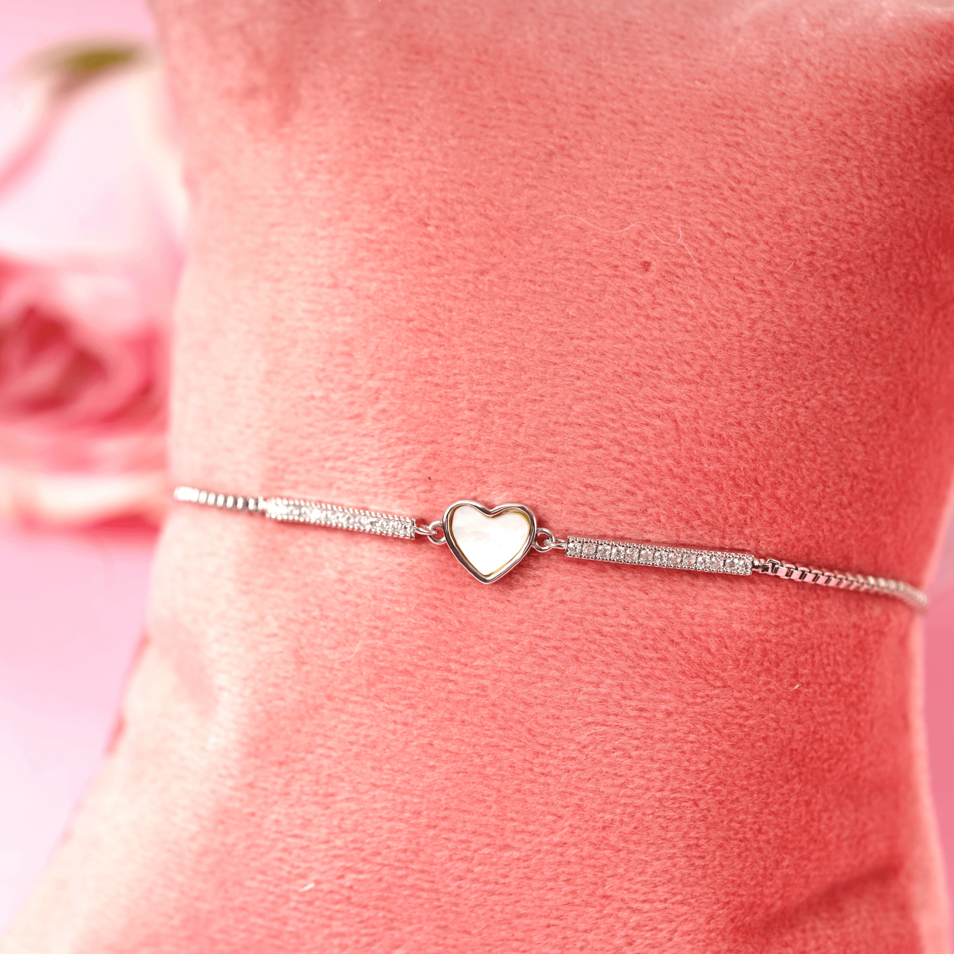 Fancy Design Adjustable Heart Shape Silver Plated Bracelet - Rukhmani