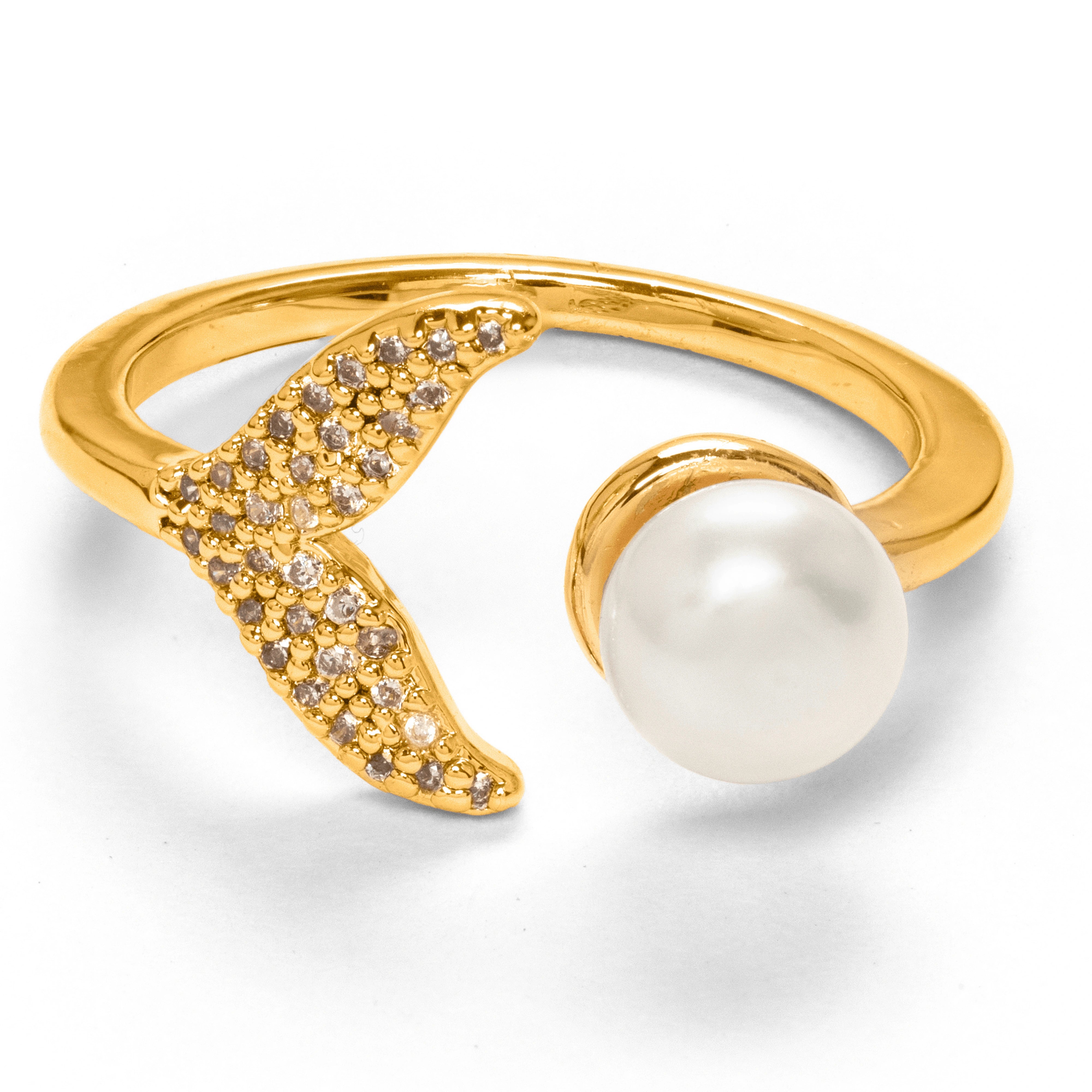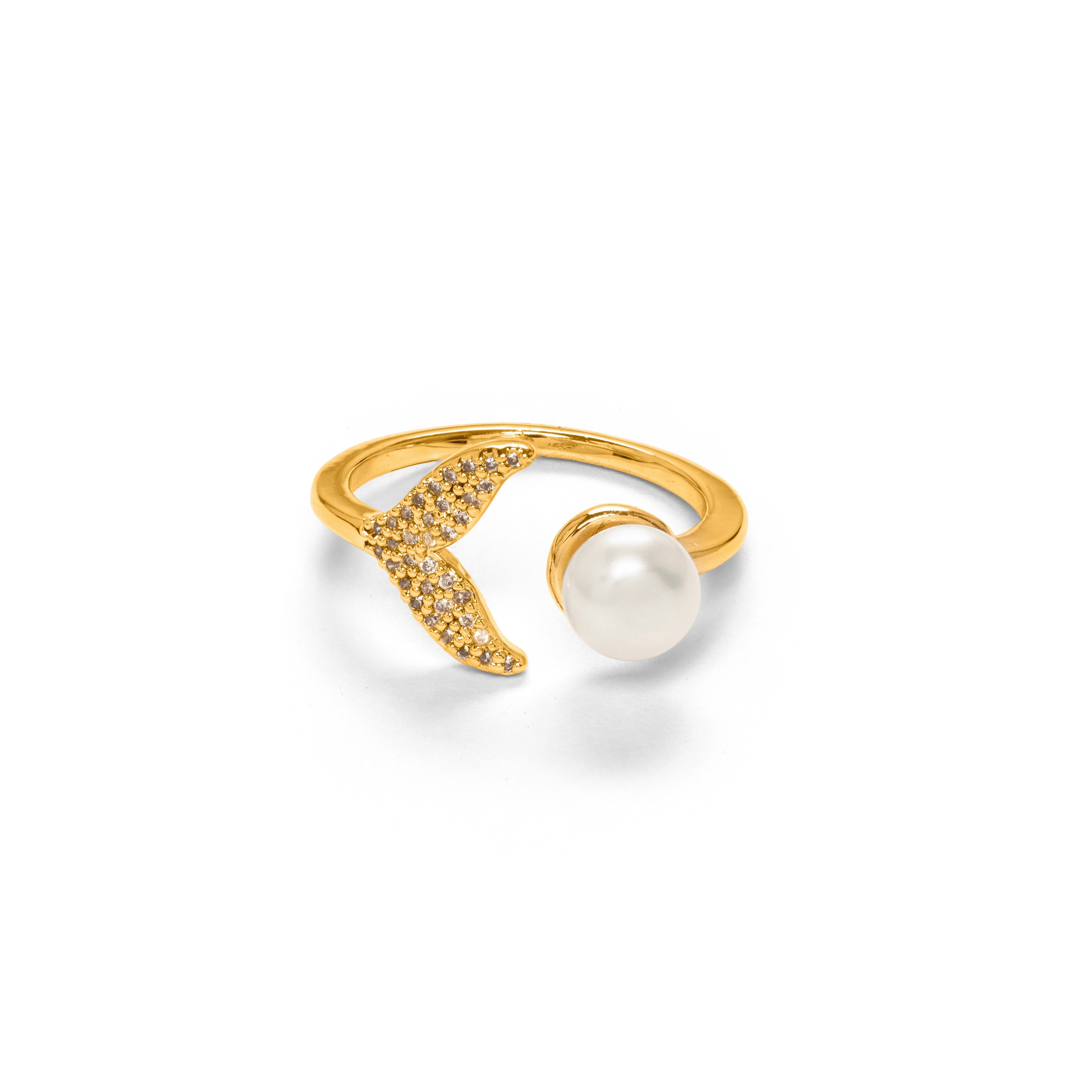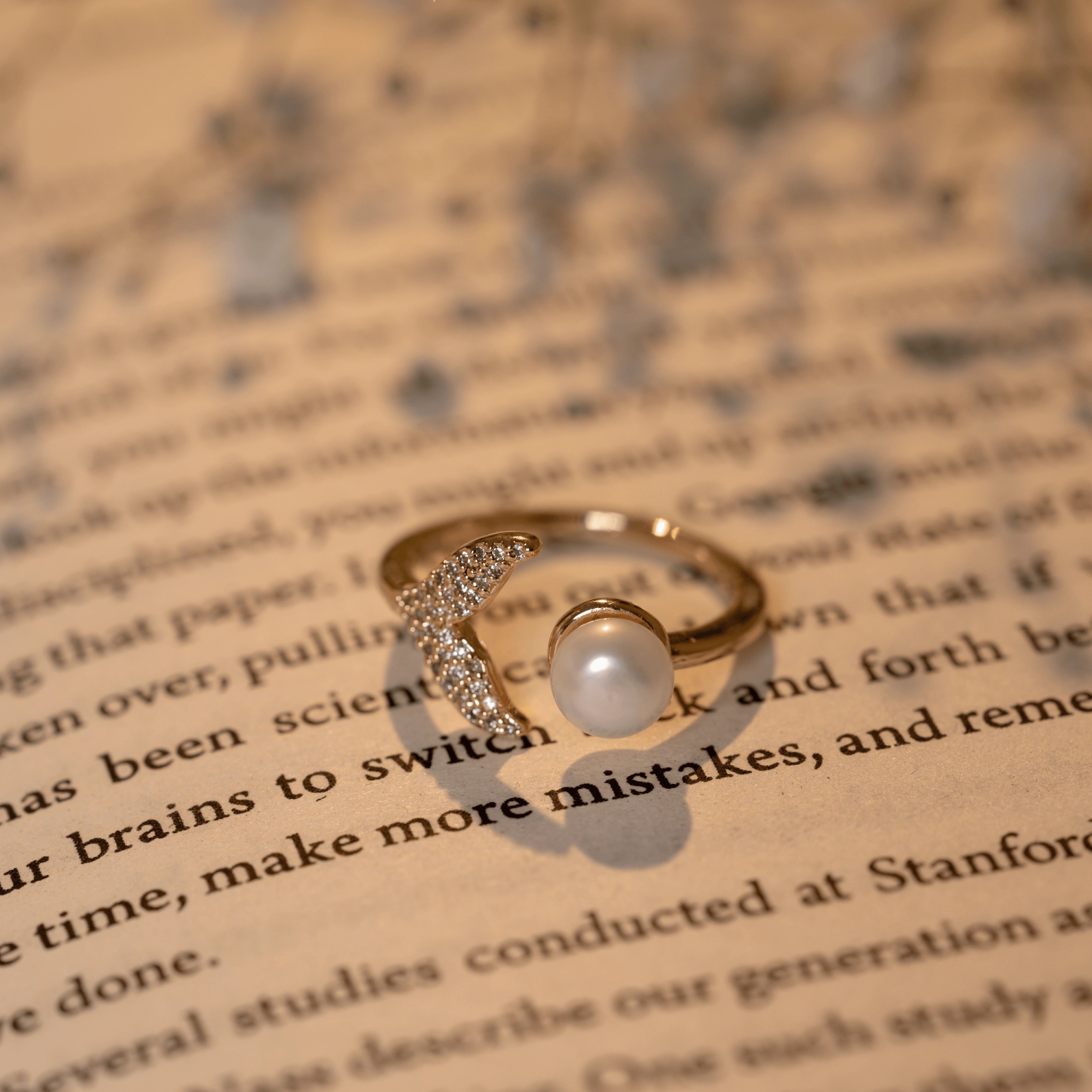 Fancy Latest Leaf Shape Pearl Gold Plated Rings