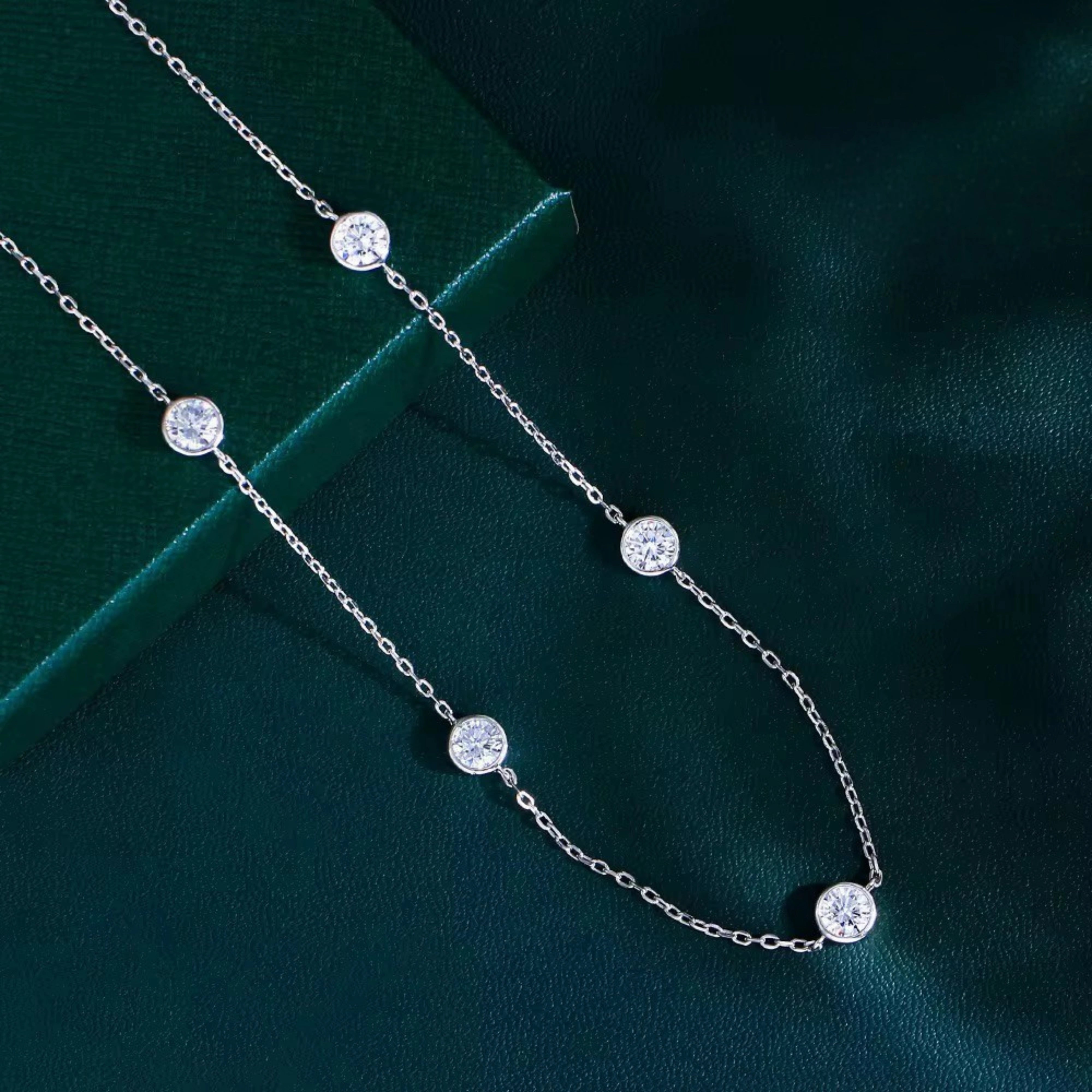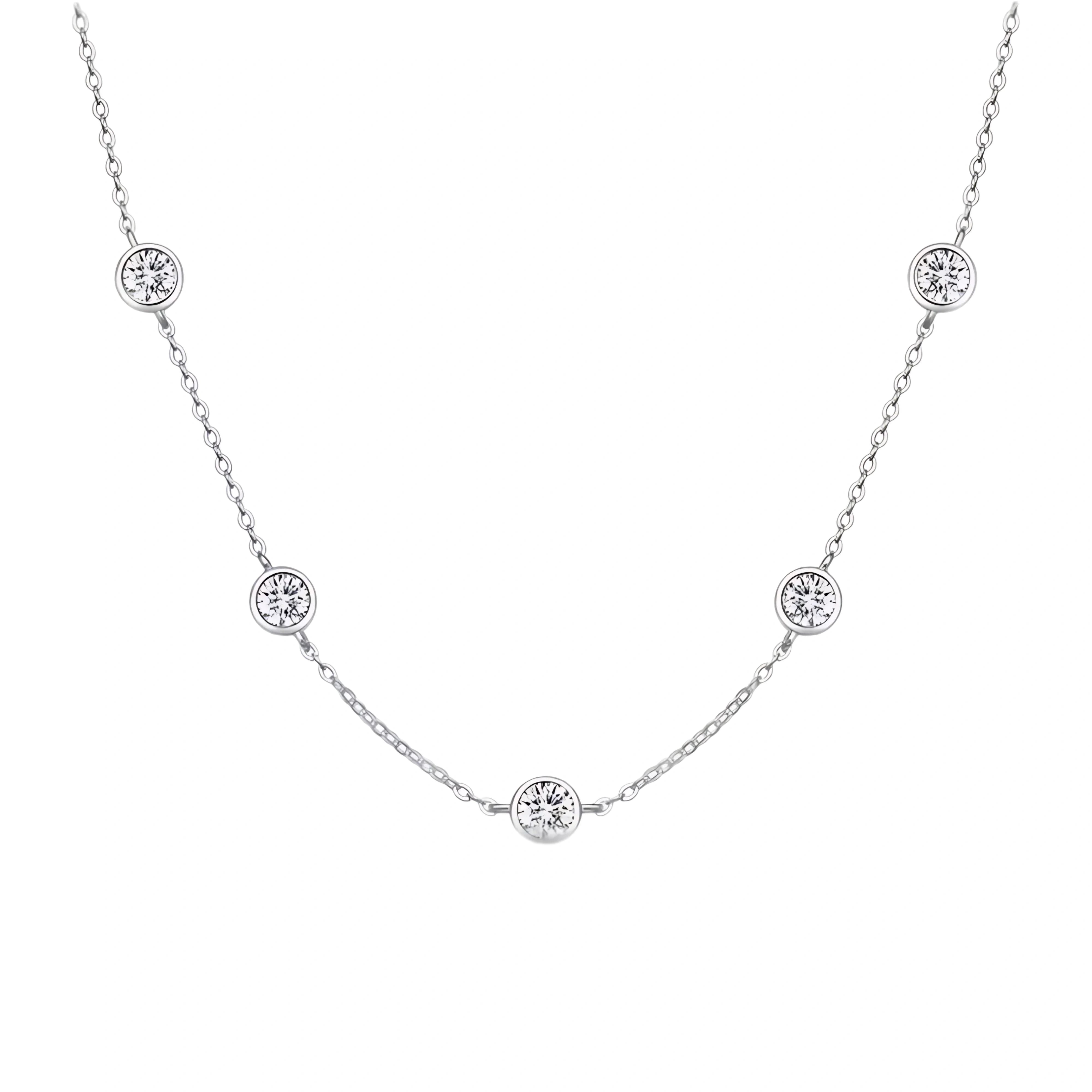 Fashion Bezel Setting Round Cubic Zircon Gemstone 925 Sterling Silver Chain Choker Necklace for Women Daily Jewellery