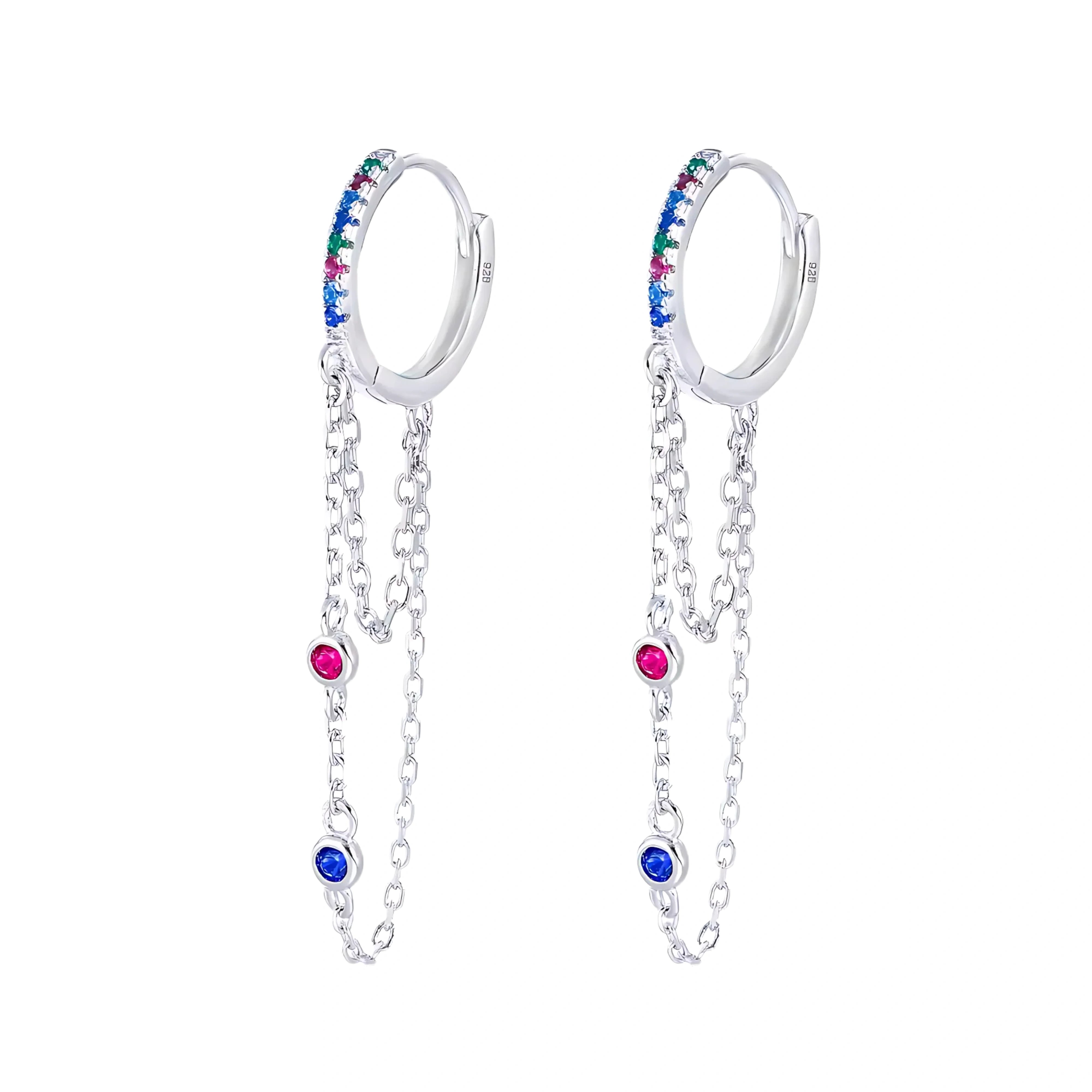 Fashion Jewelry Cubic Zirconia 925 Sterling Silver Dangle Drop Earring Long Tassel Chain Charms Huggie Hoop Earrings for Women