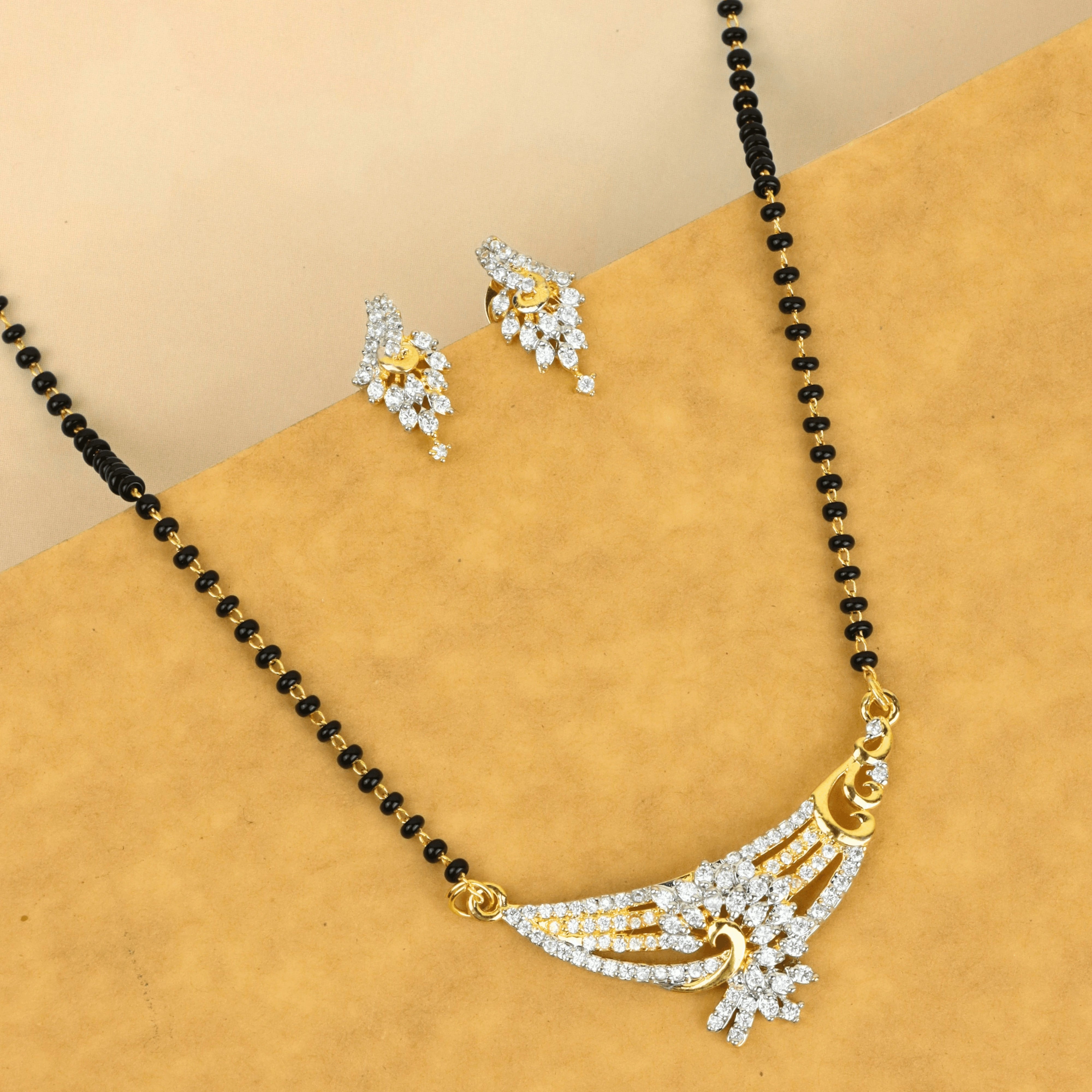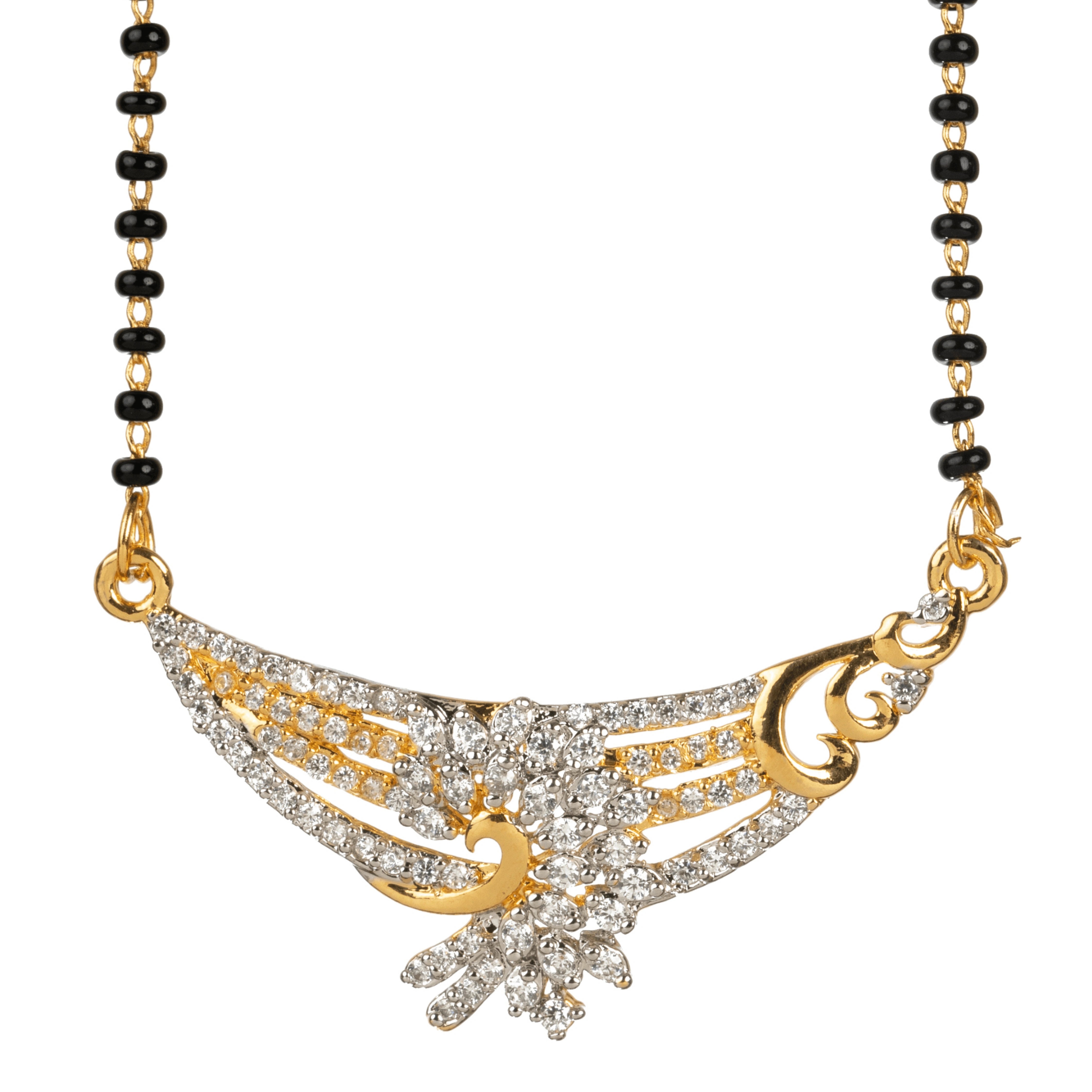 Latest Fancy Gold Plated American Diamond Pendant Mangalsutra - Rukhmani