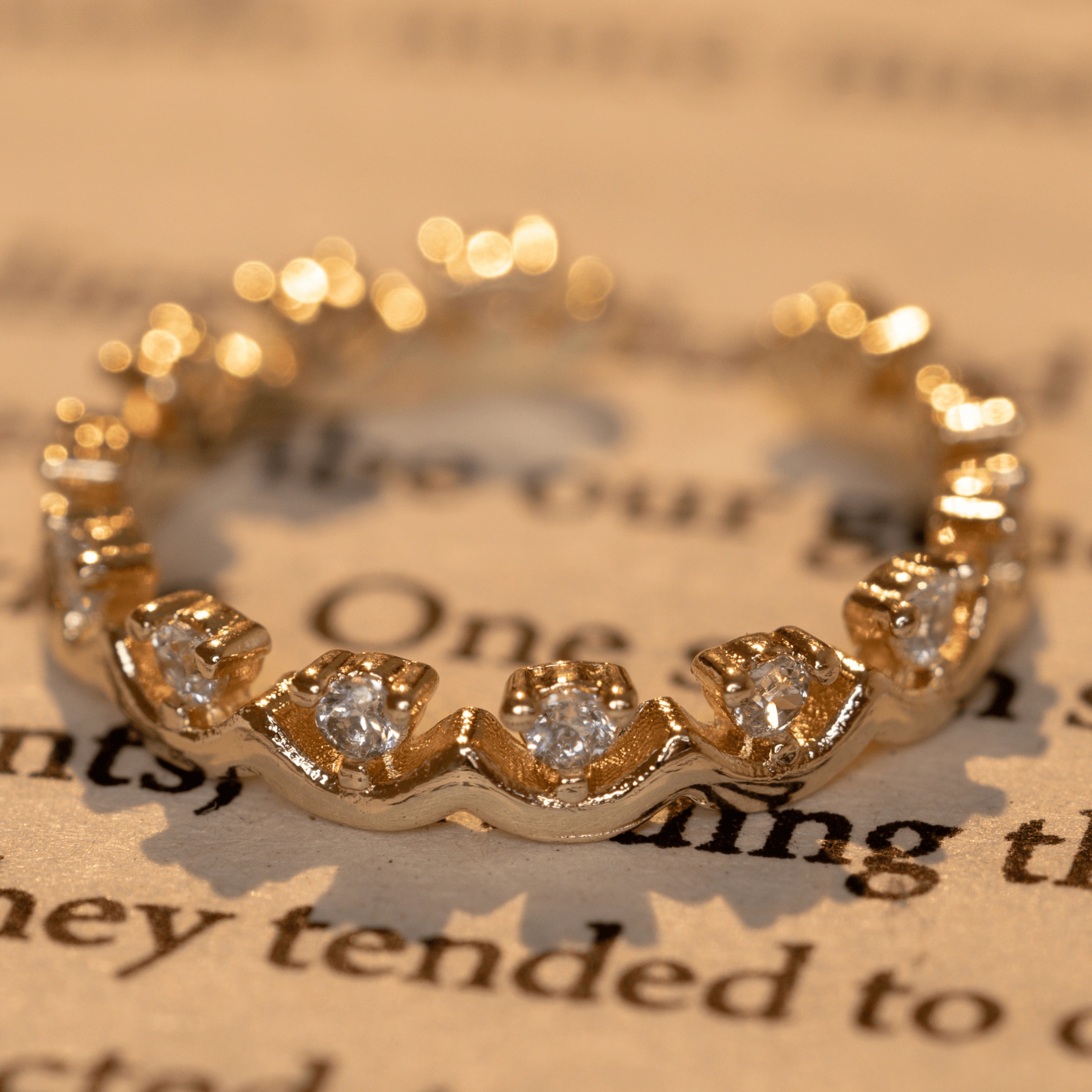Gold Plated Beautiful Clear White Quartz Band Stack Ring