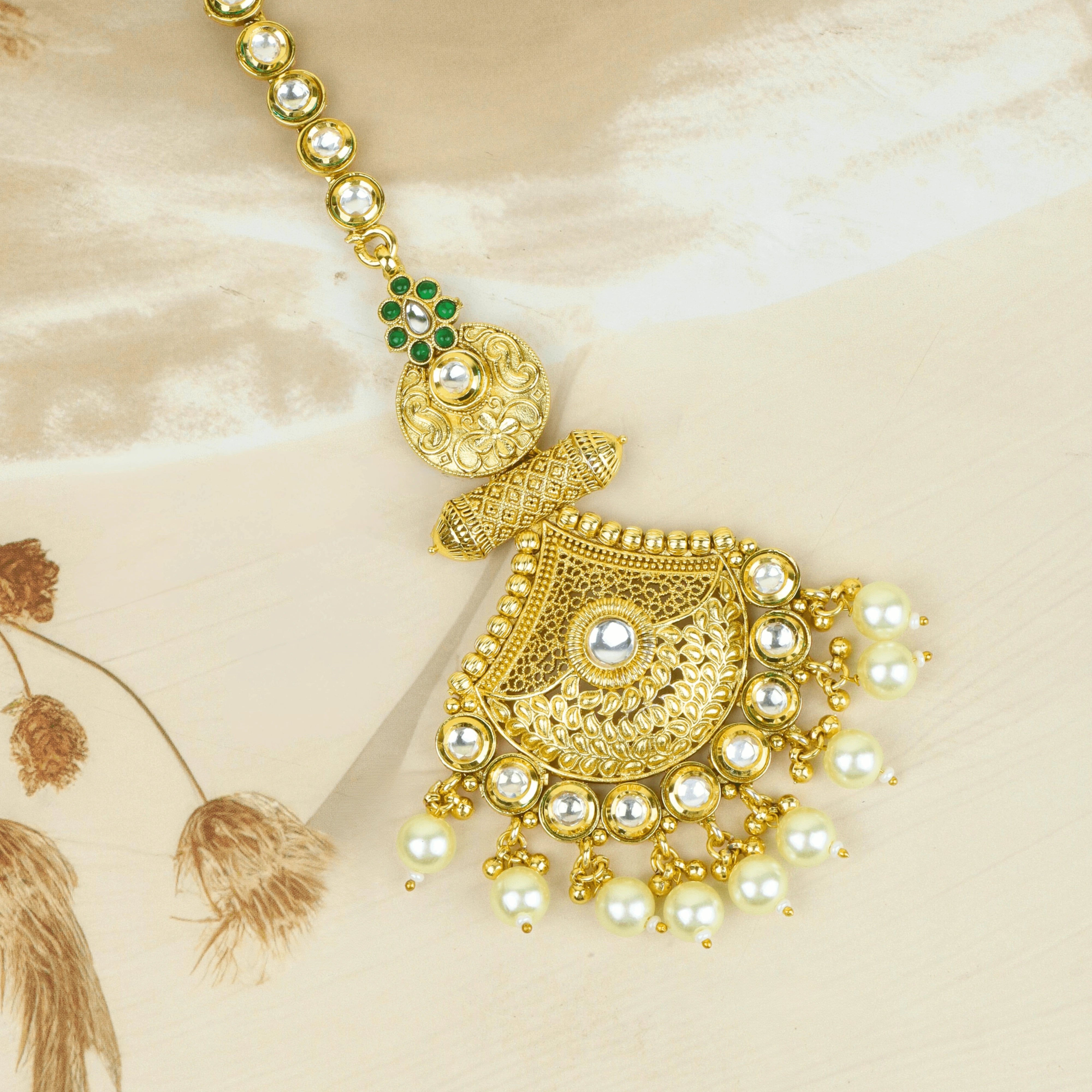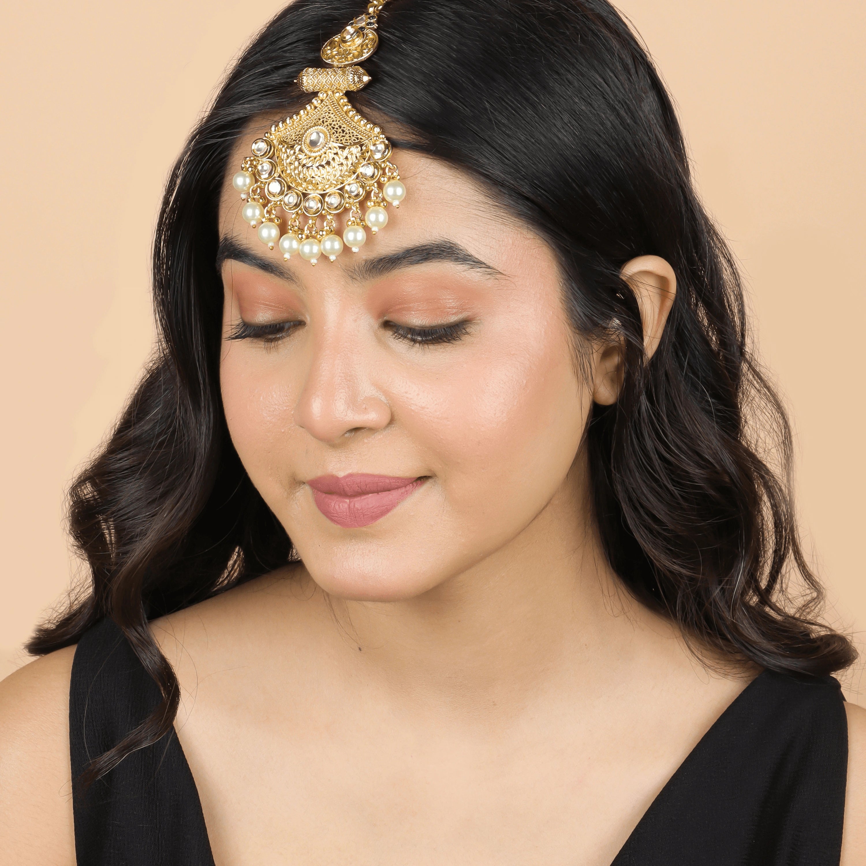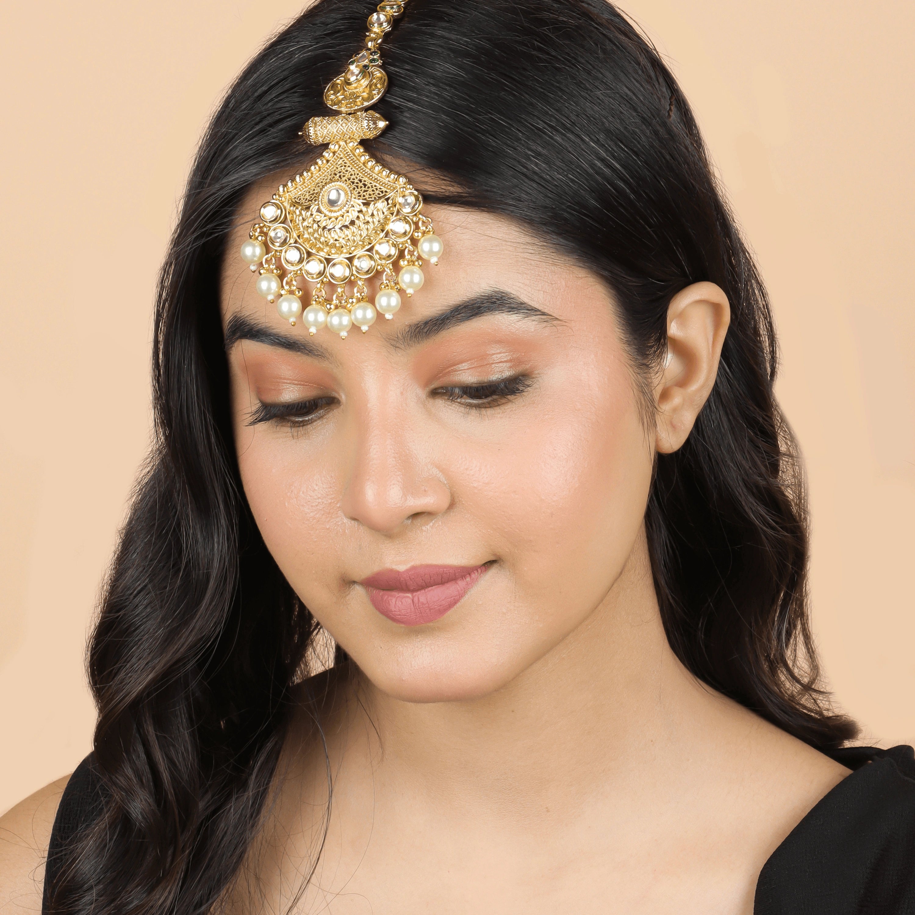 Gold Plated Classic Kundan With Pearls Mangtika