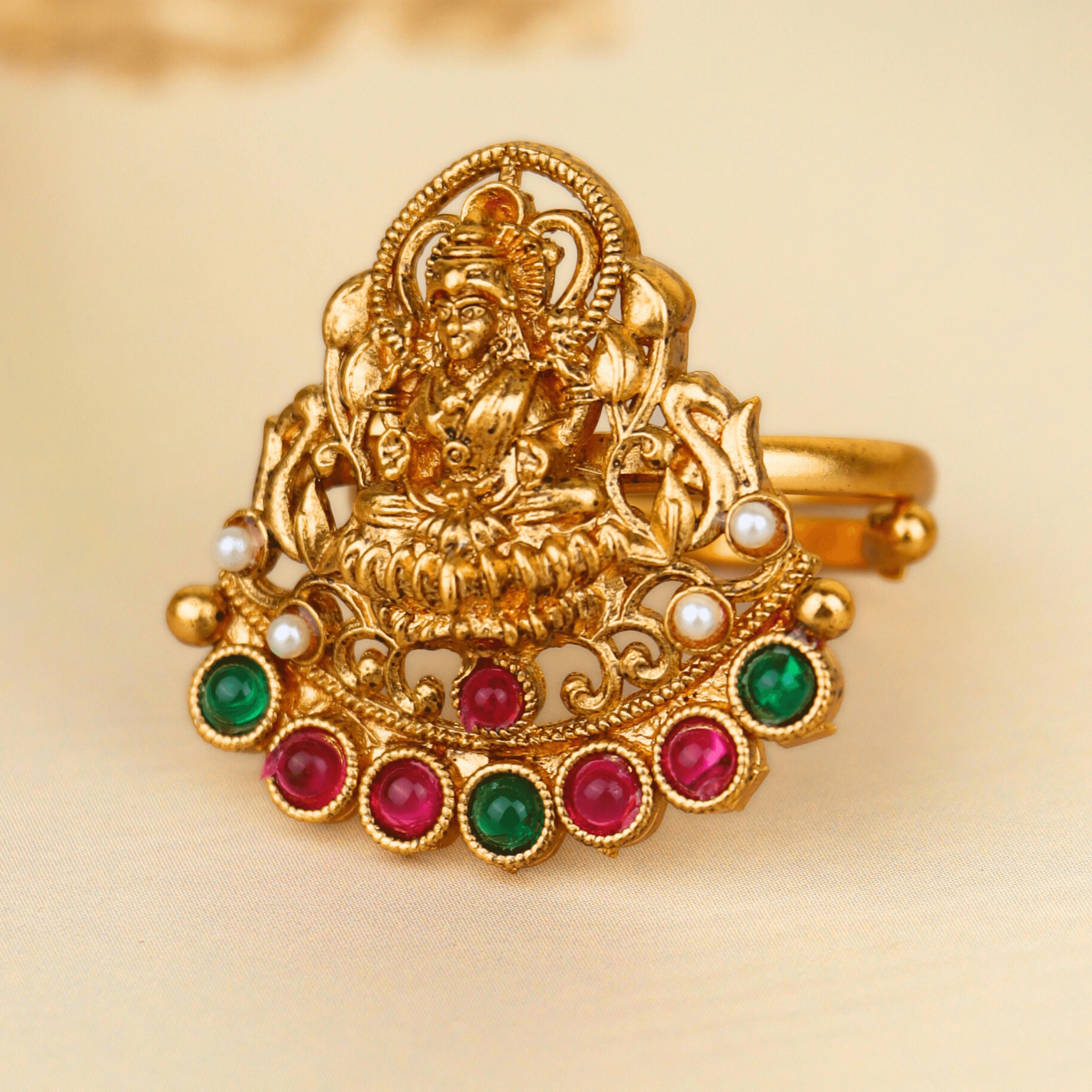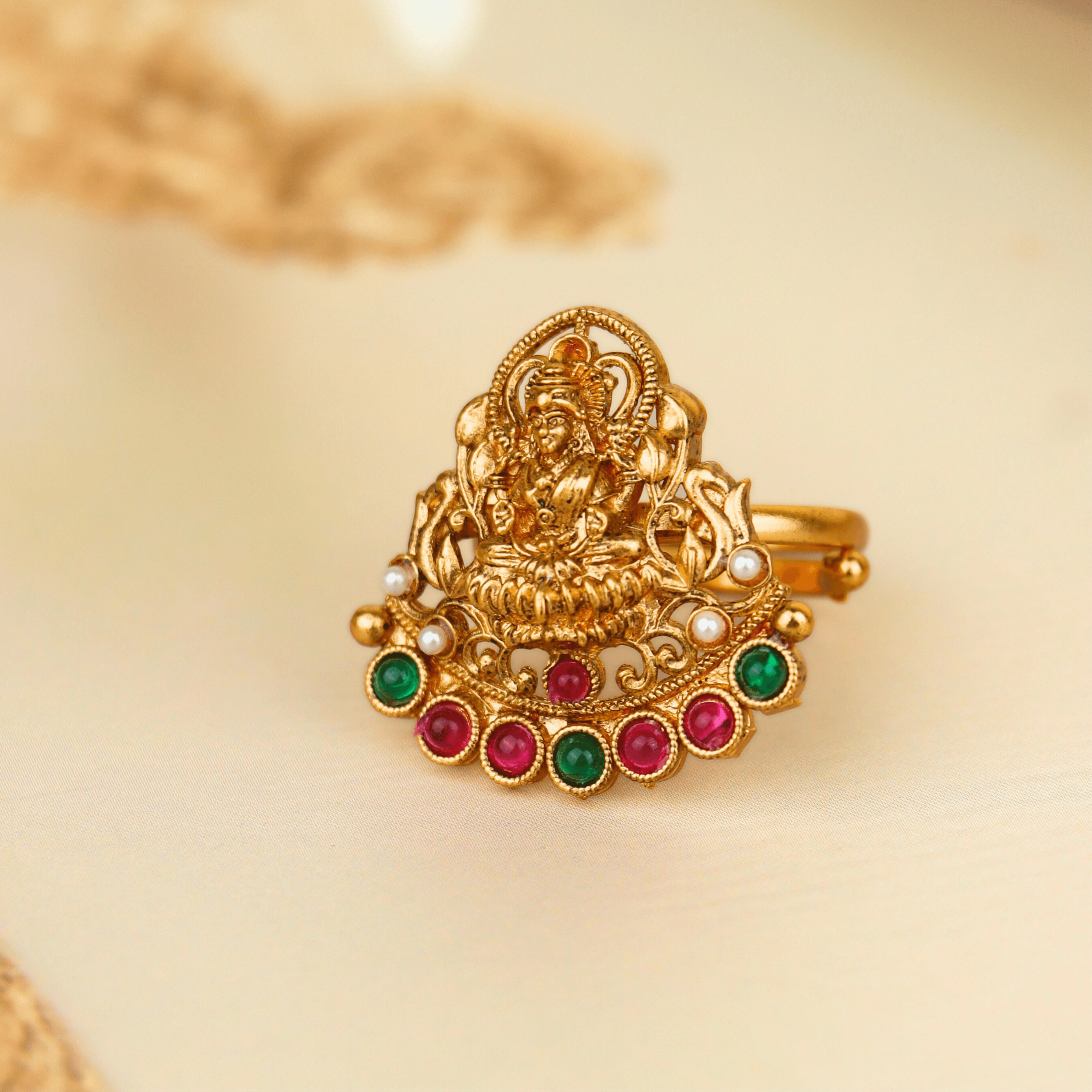Gold Plated Designer Goddess Glow Temple Ring - Rukhmani