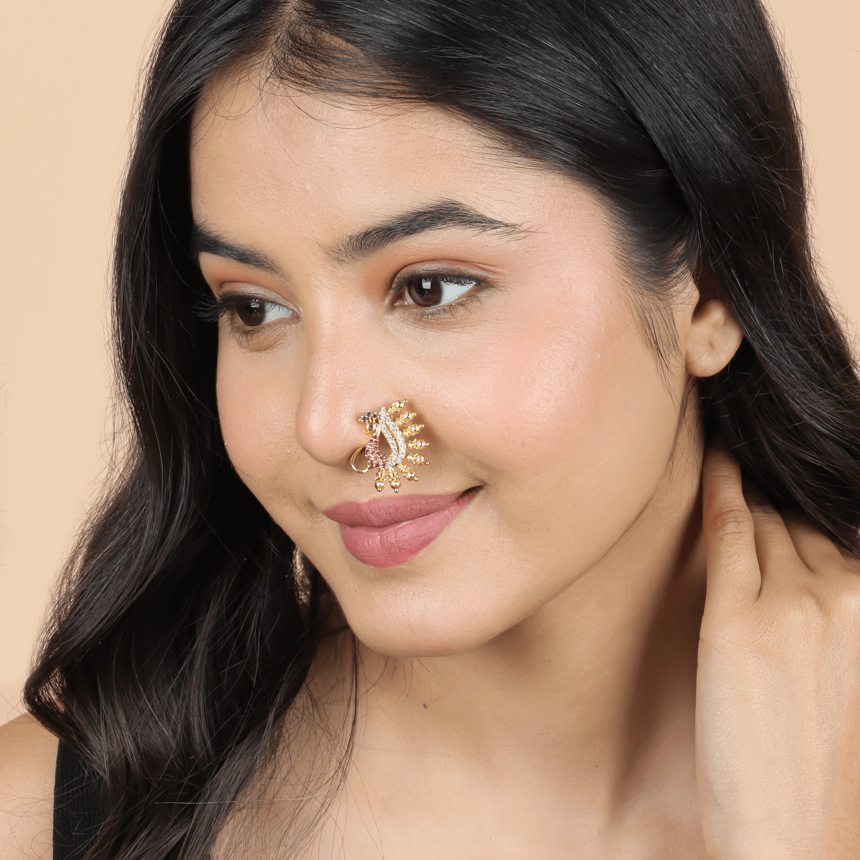 Gold Plated Graceful Peacock Maharashtrian Nath - Rukhmani