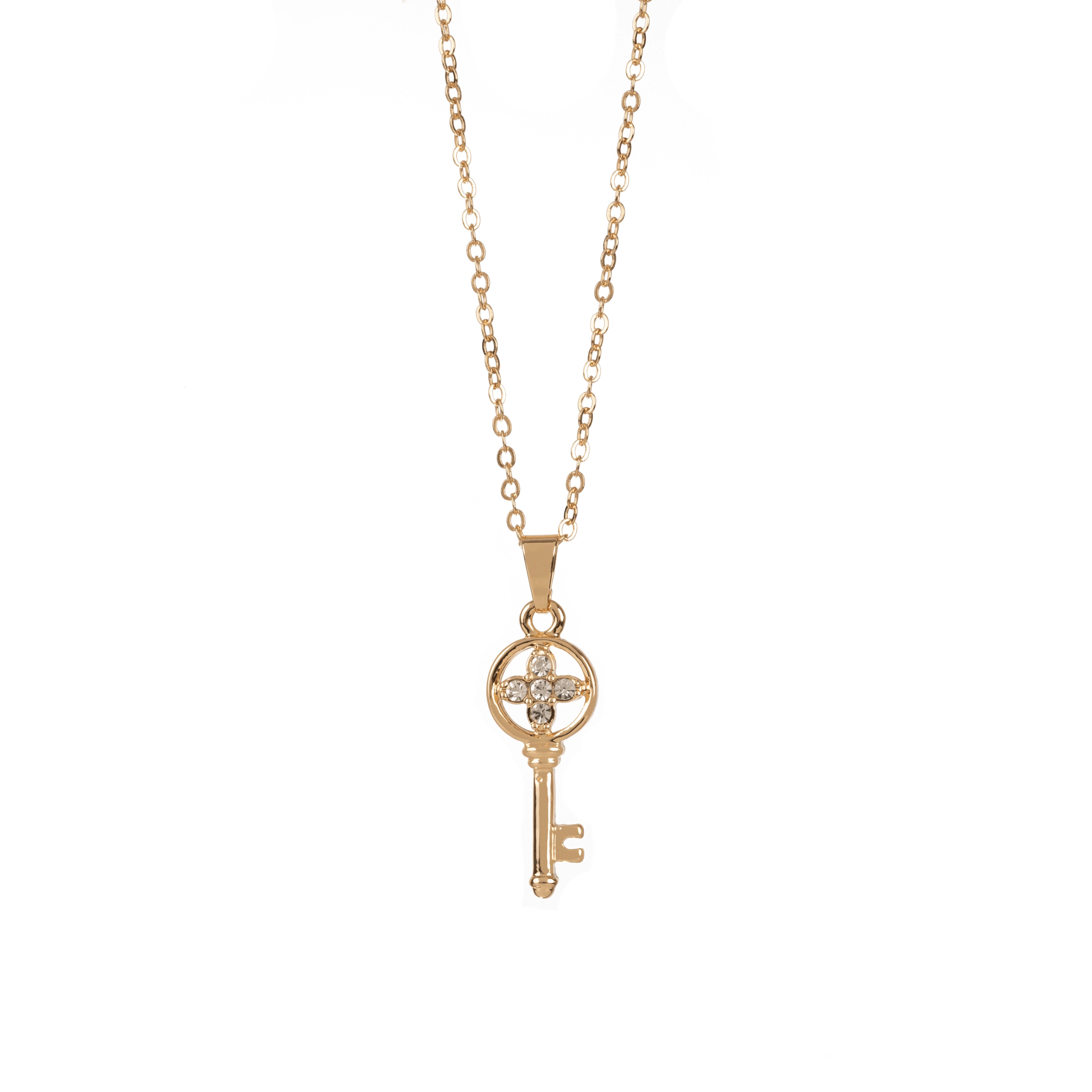 Gold Plated Mini Key Diamond Design Chain Pendant