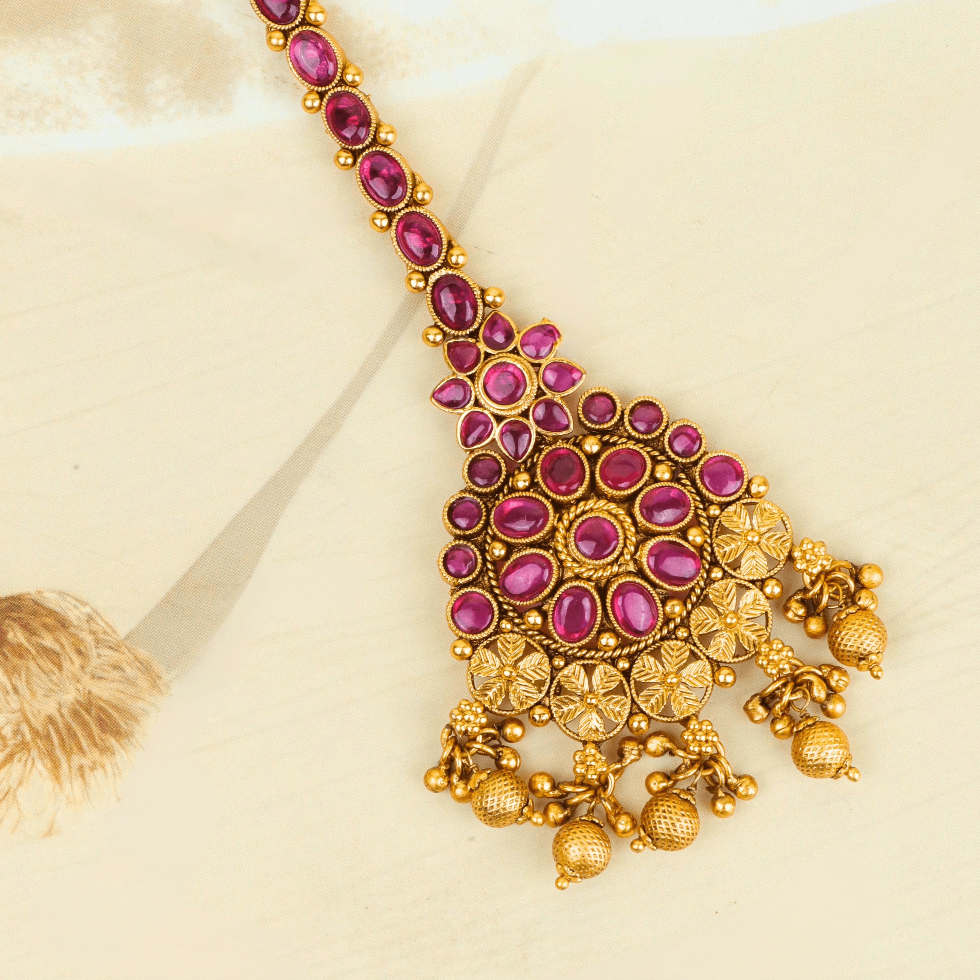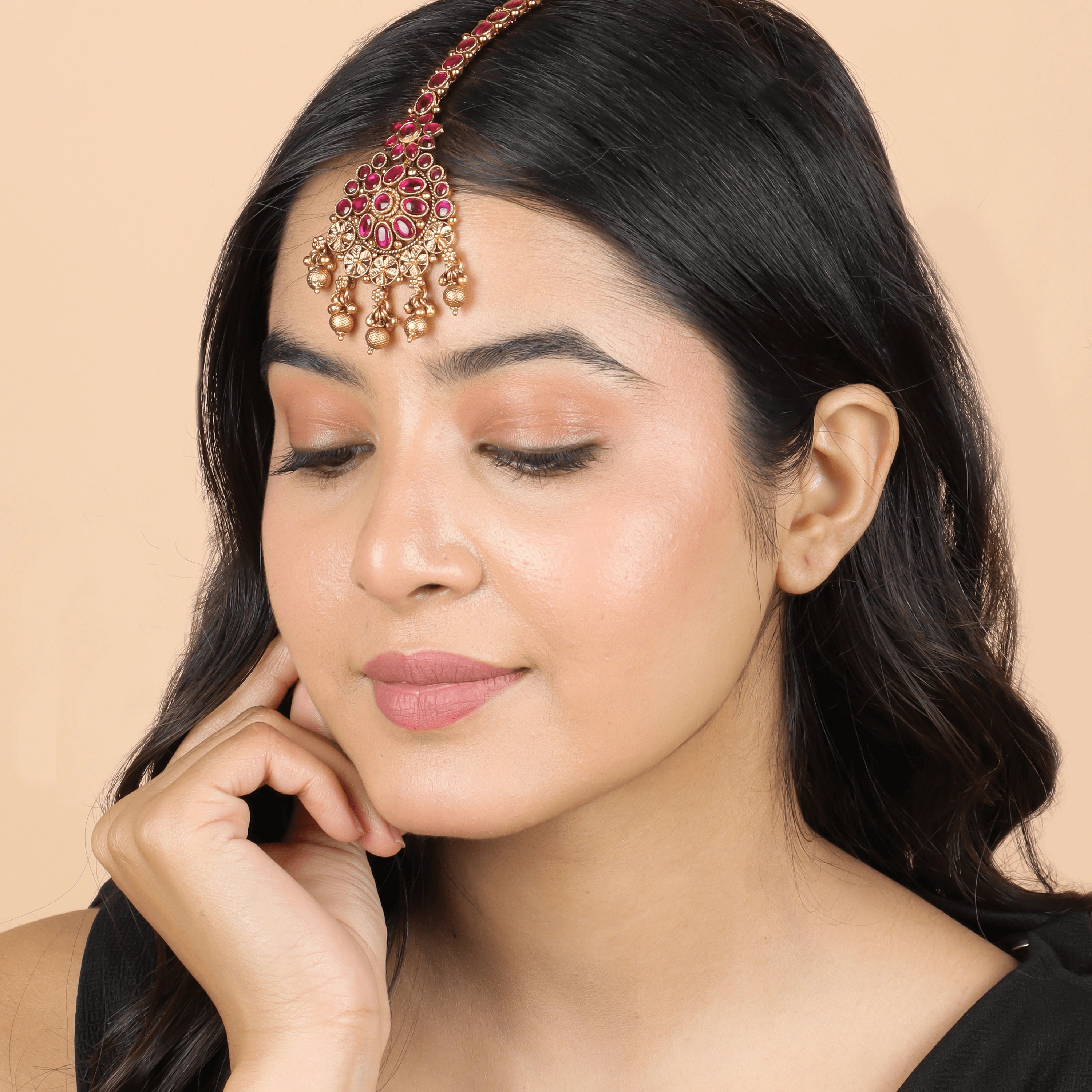 Gold Plated Royal Red Stone Kundan Beautiful Mangtika