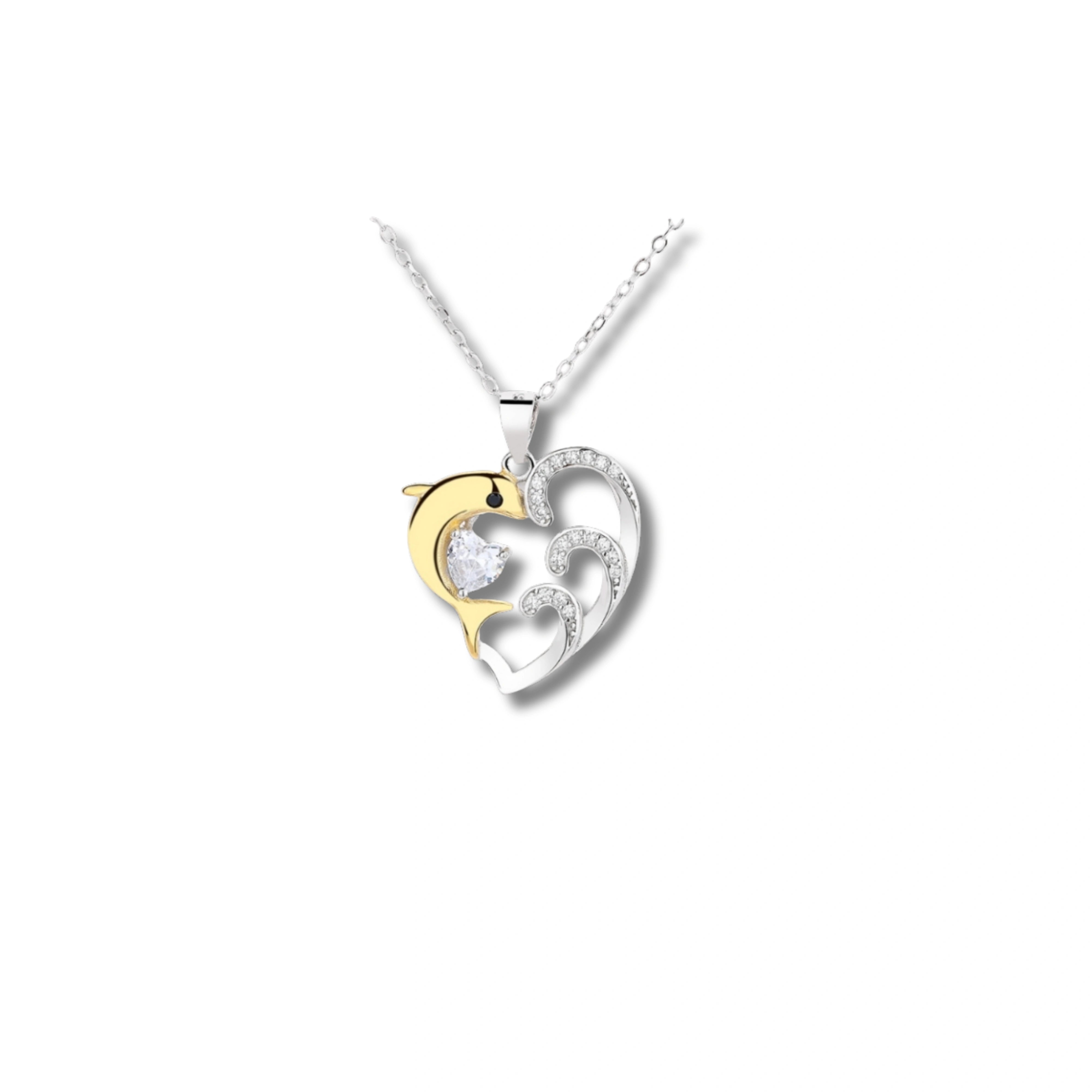 Golden Dolphin Heart Pendant in 925 Sterling Silver