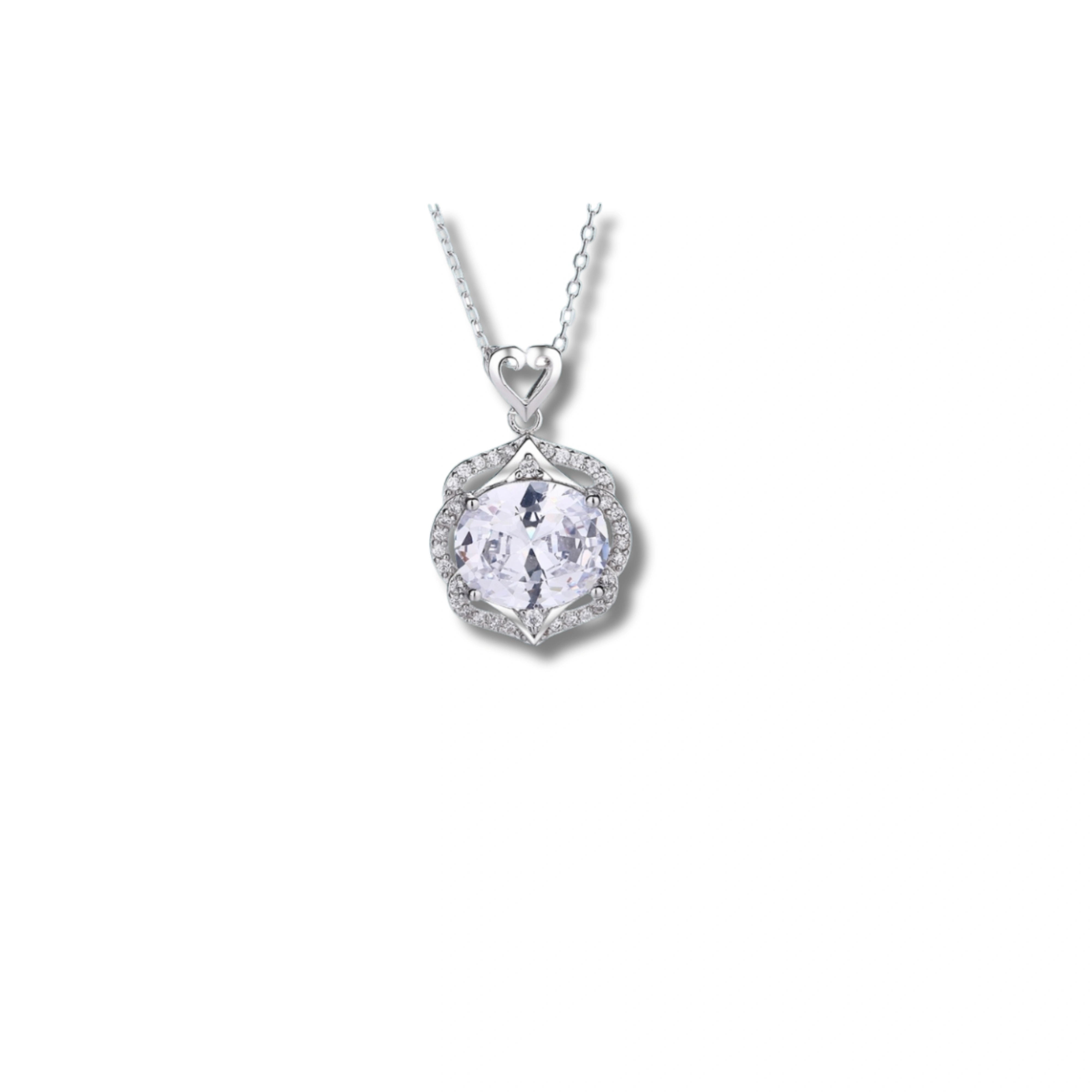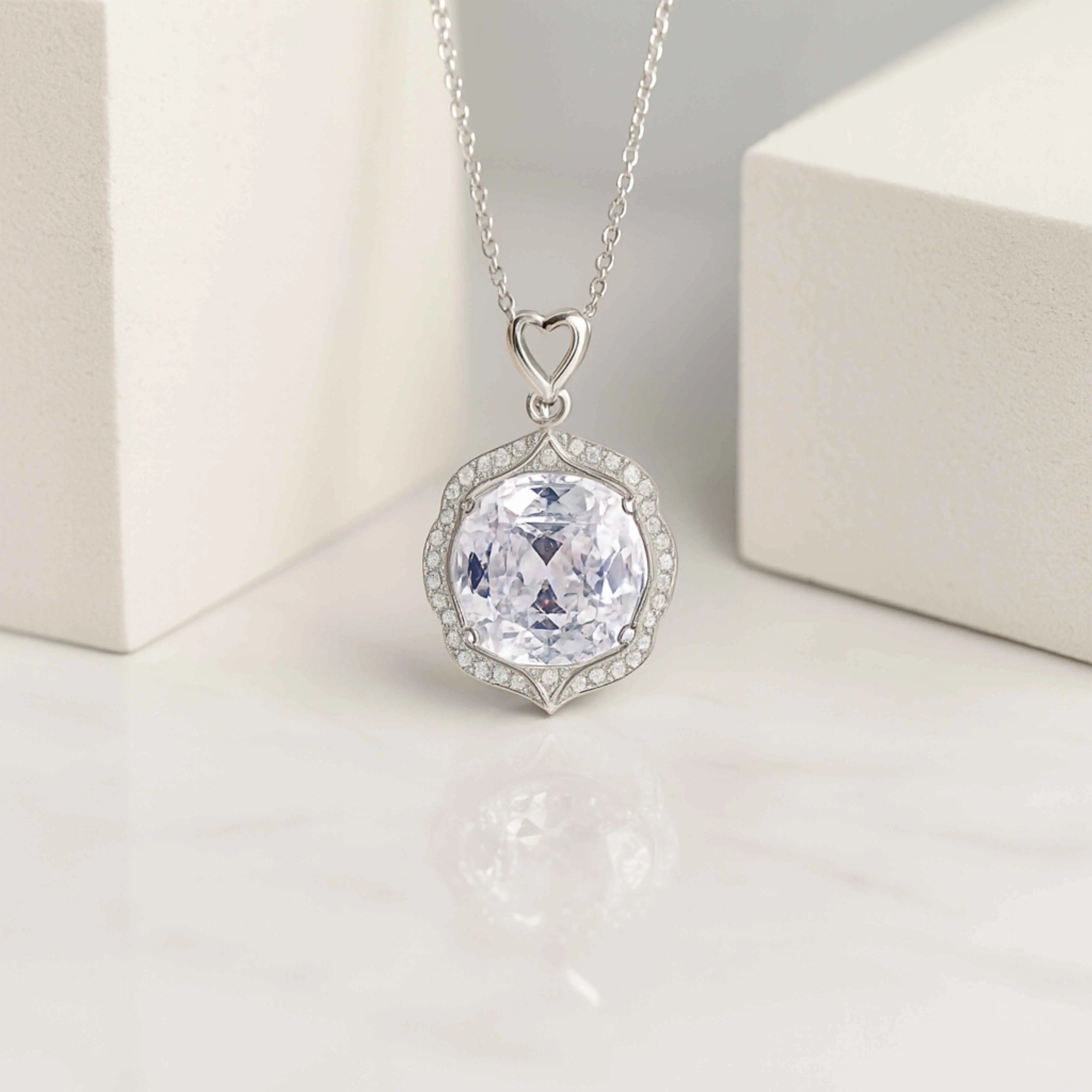 Heart Accent Pendant with White Stone in 925 Sterling Silver