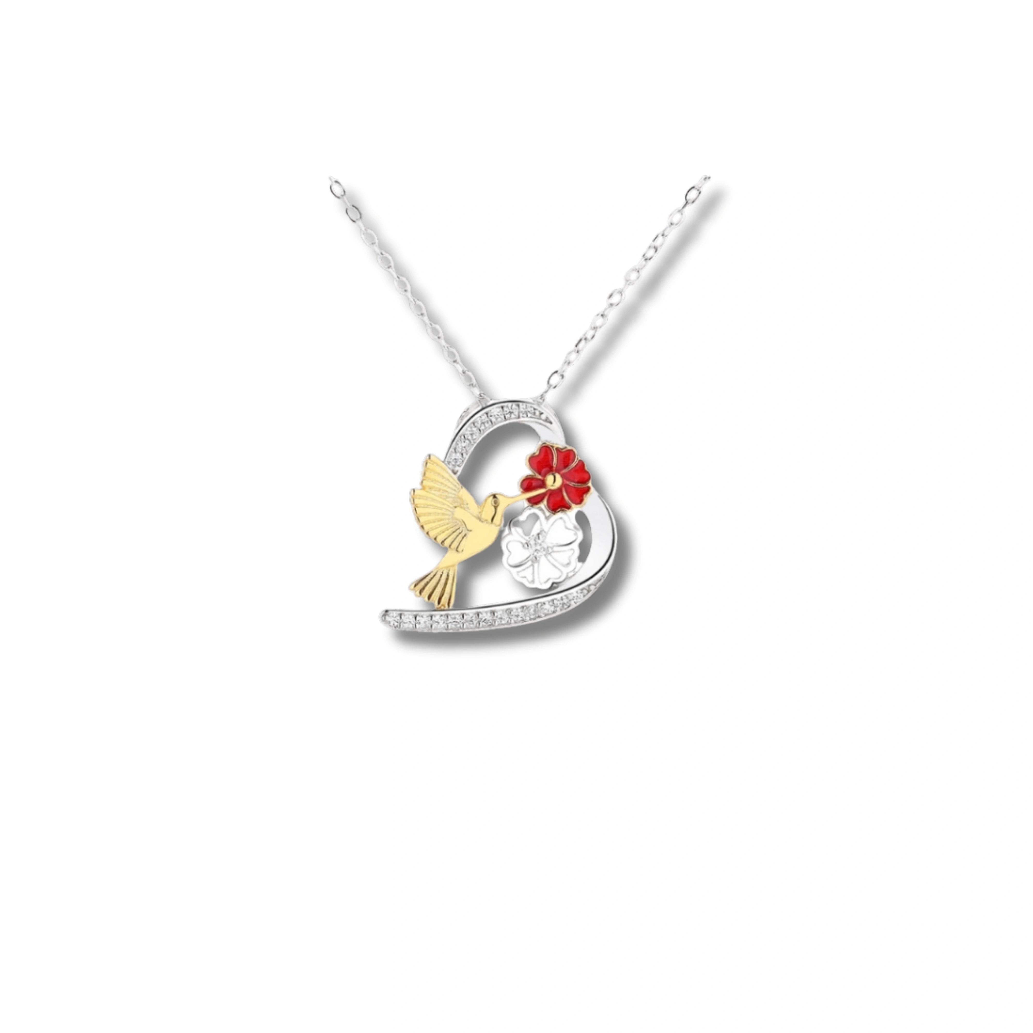 Heart Pendant with Bird and Flower Motif in 925 Sterling Silver