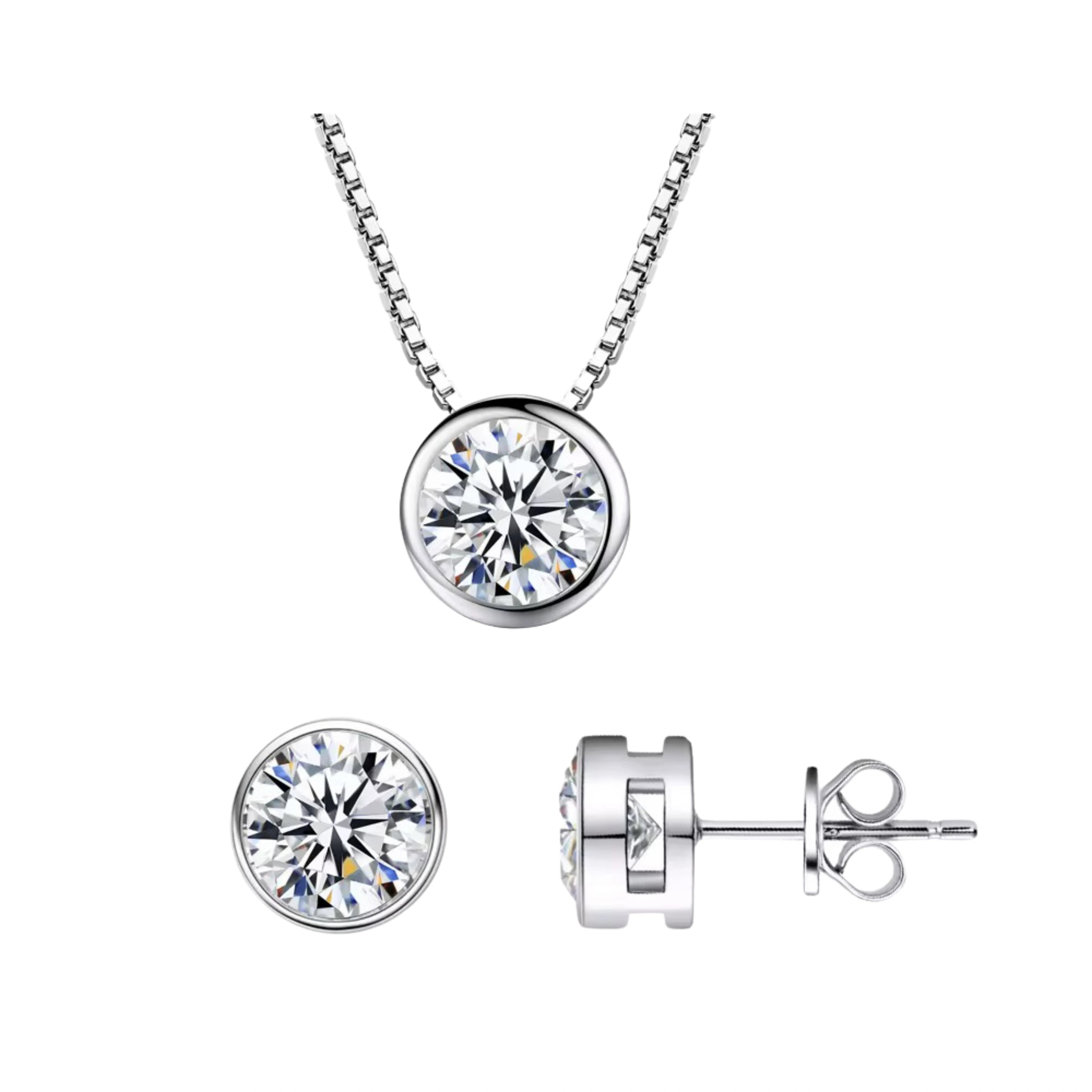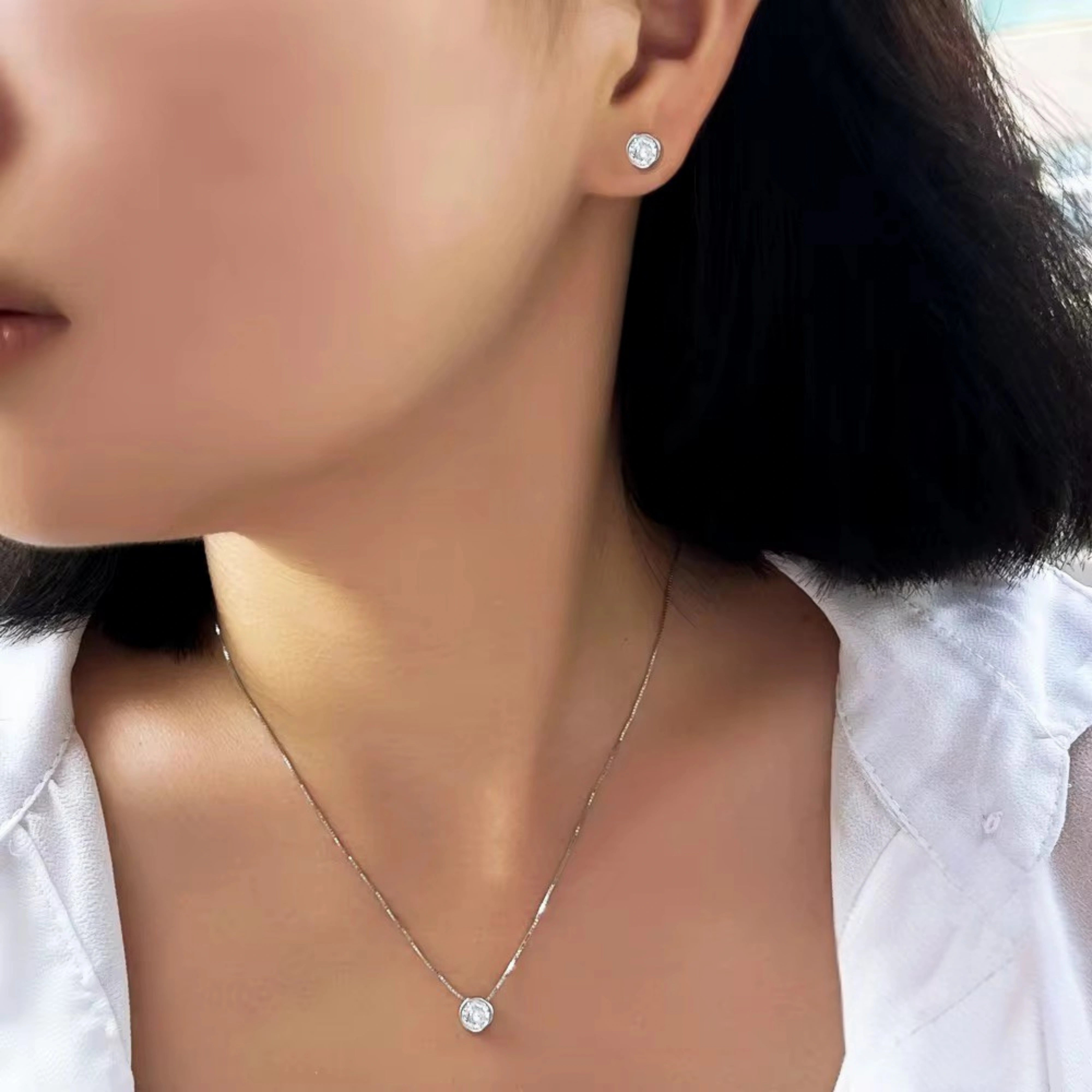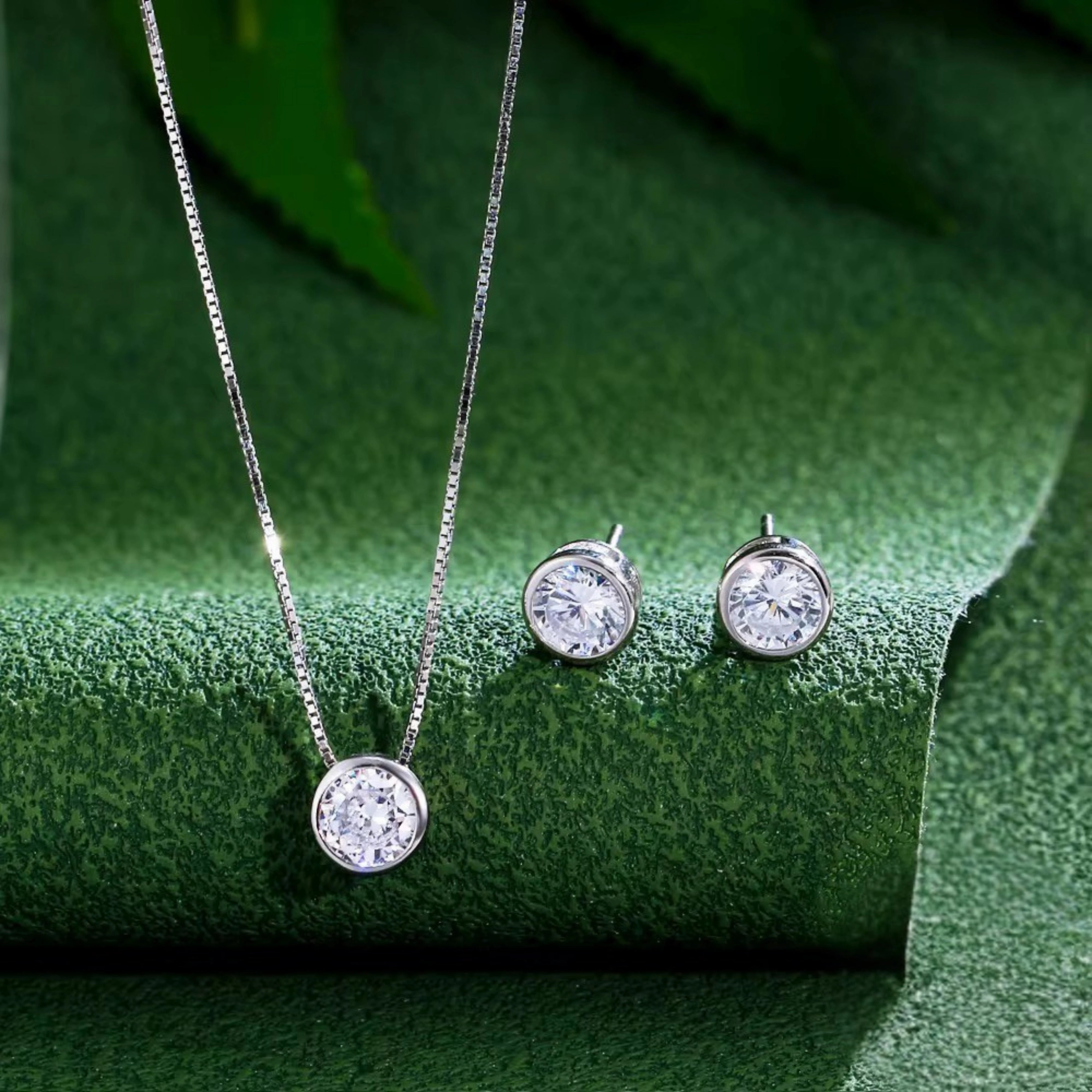 High Quality Simple Design 925 Sterling Silver Single Round Cubic Zircon Necklaces and Earrings Jewelry Set for Women Daily Wear