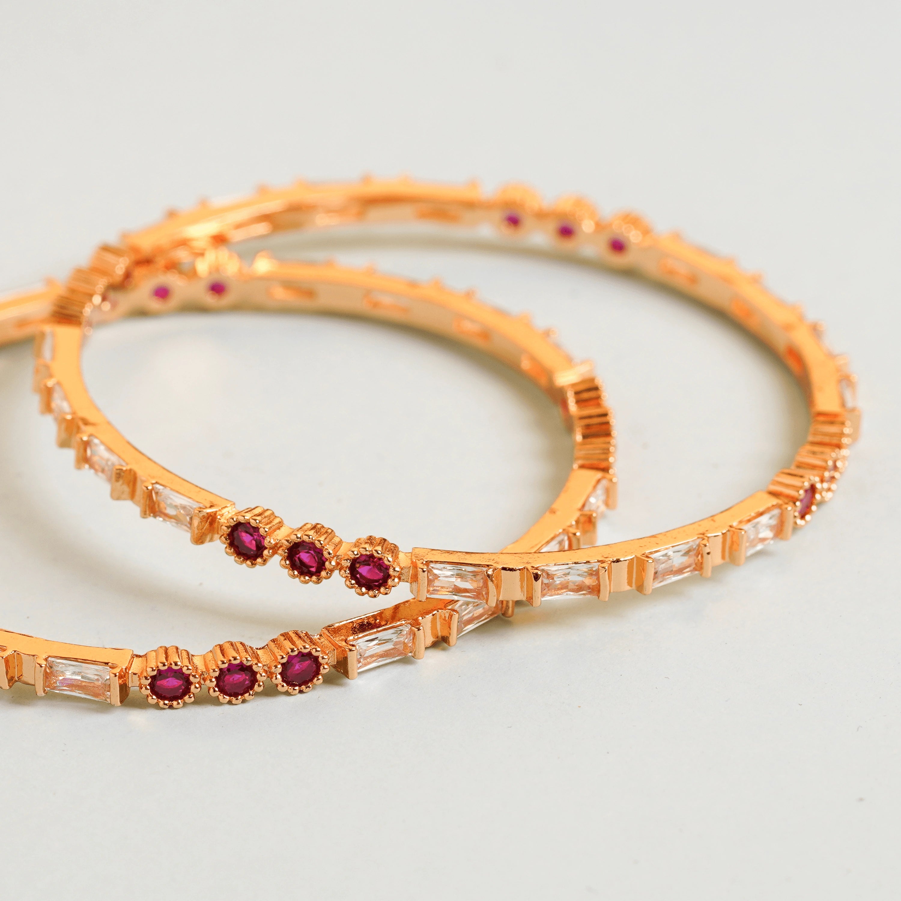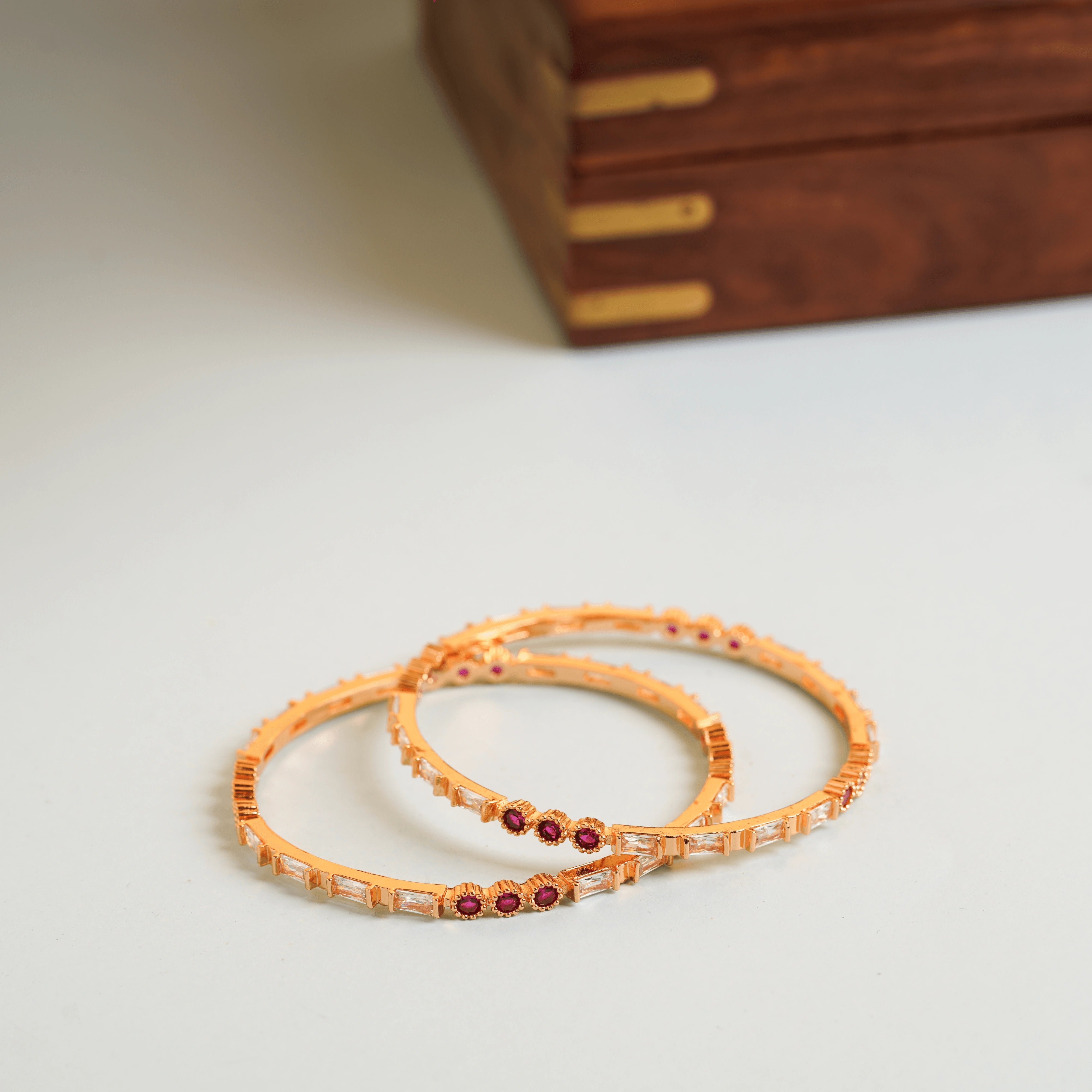 Maroon and White Stone Diamond Latest Design Gold Plated Bangles