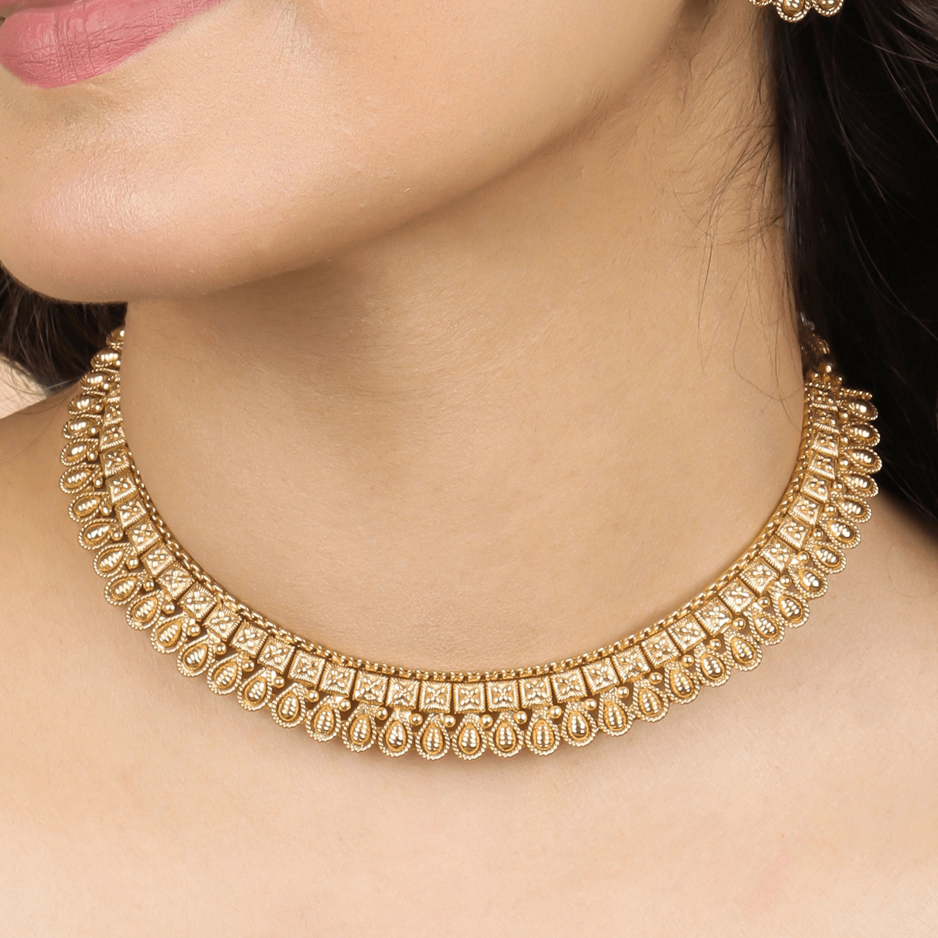 Opulent South Indian Necklace with Earrings - Rukhmani