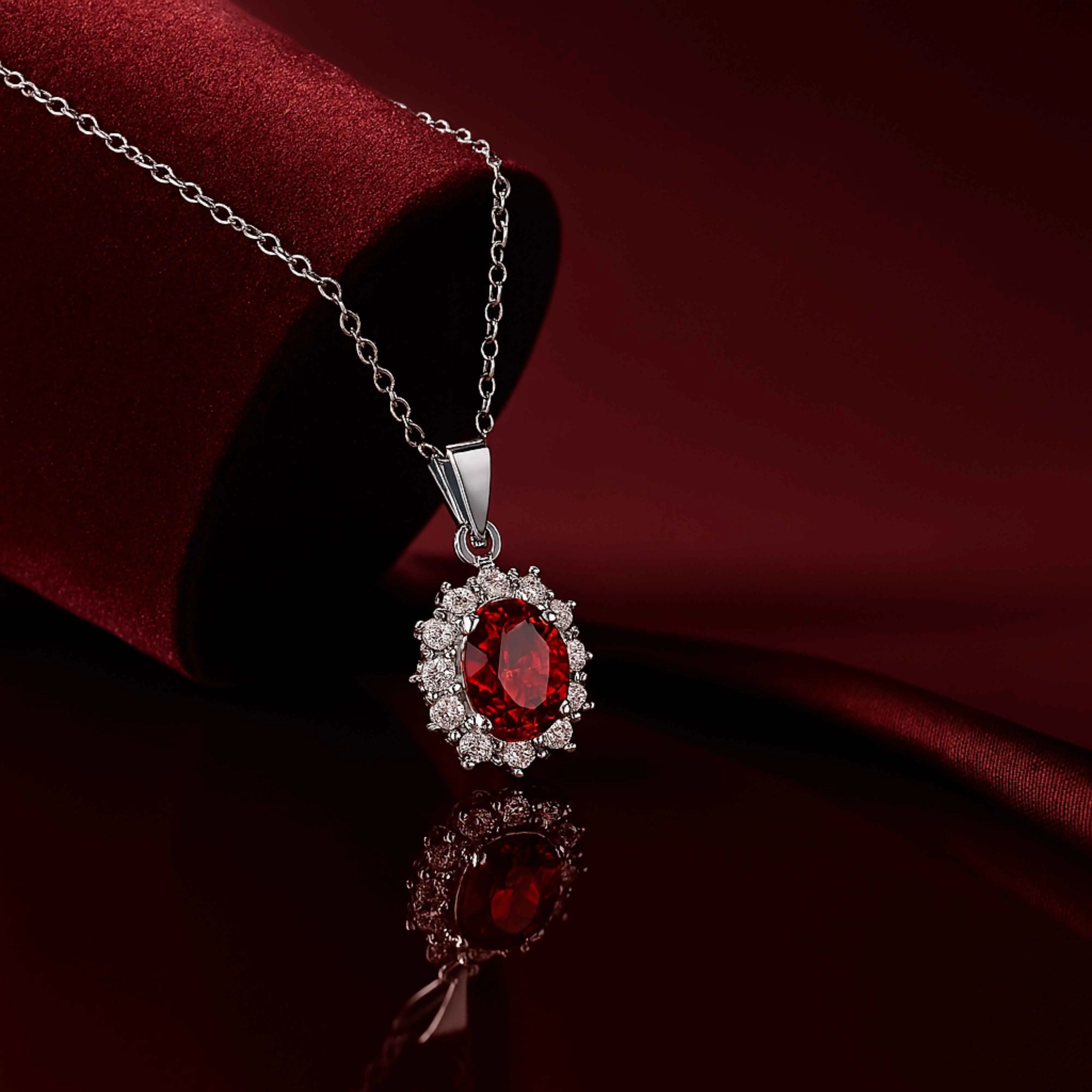 Oval Red Stone Pendant in 925 Sterling Silver
