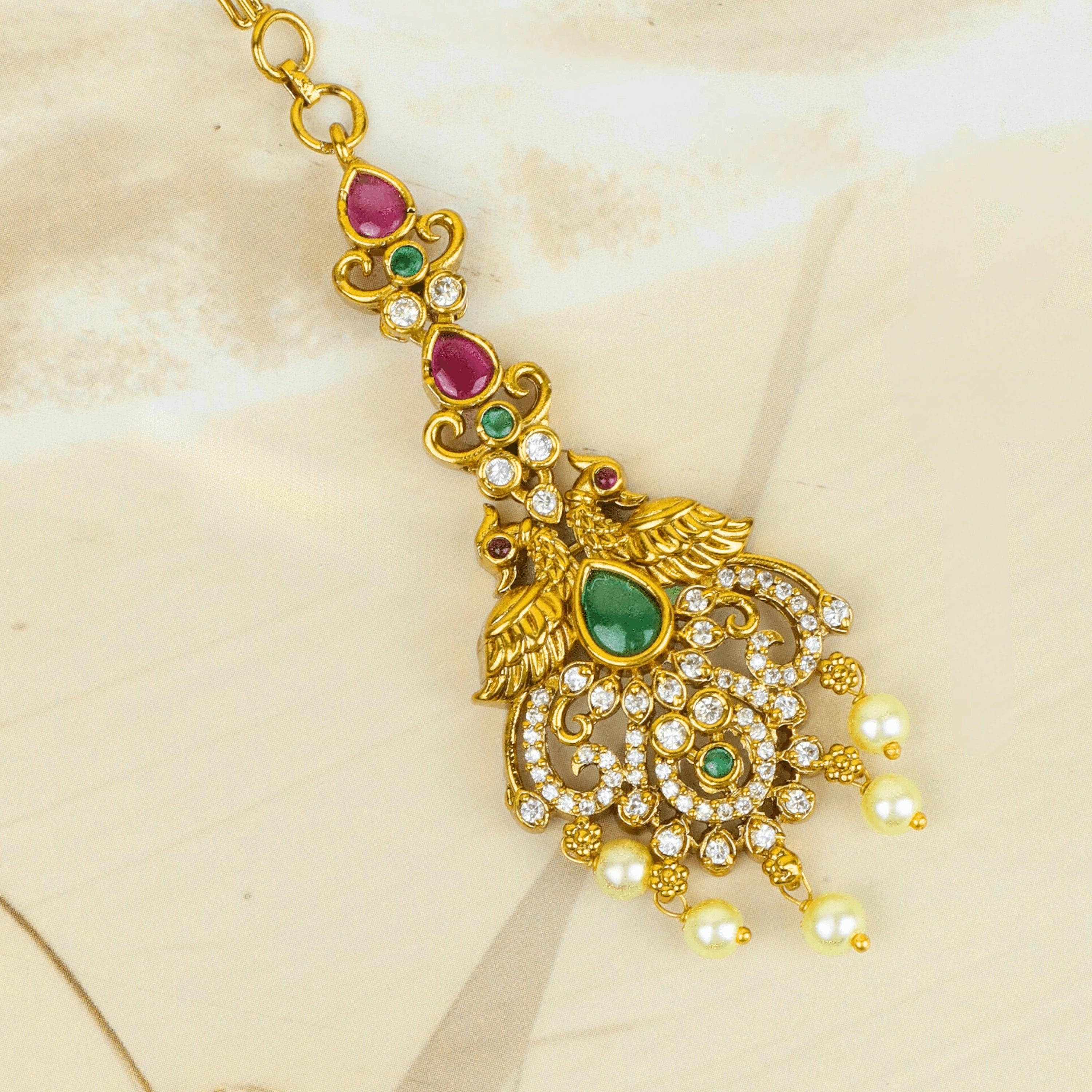 Peacock Green Stone Gold Plated Mangtika - Rukhmani