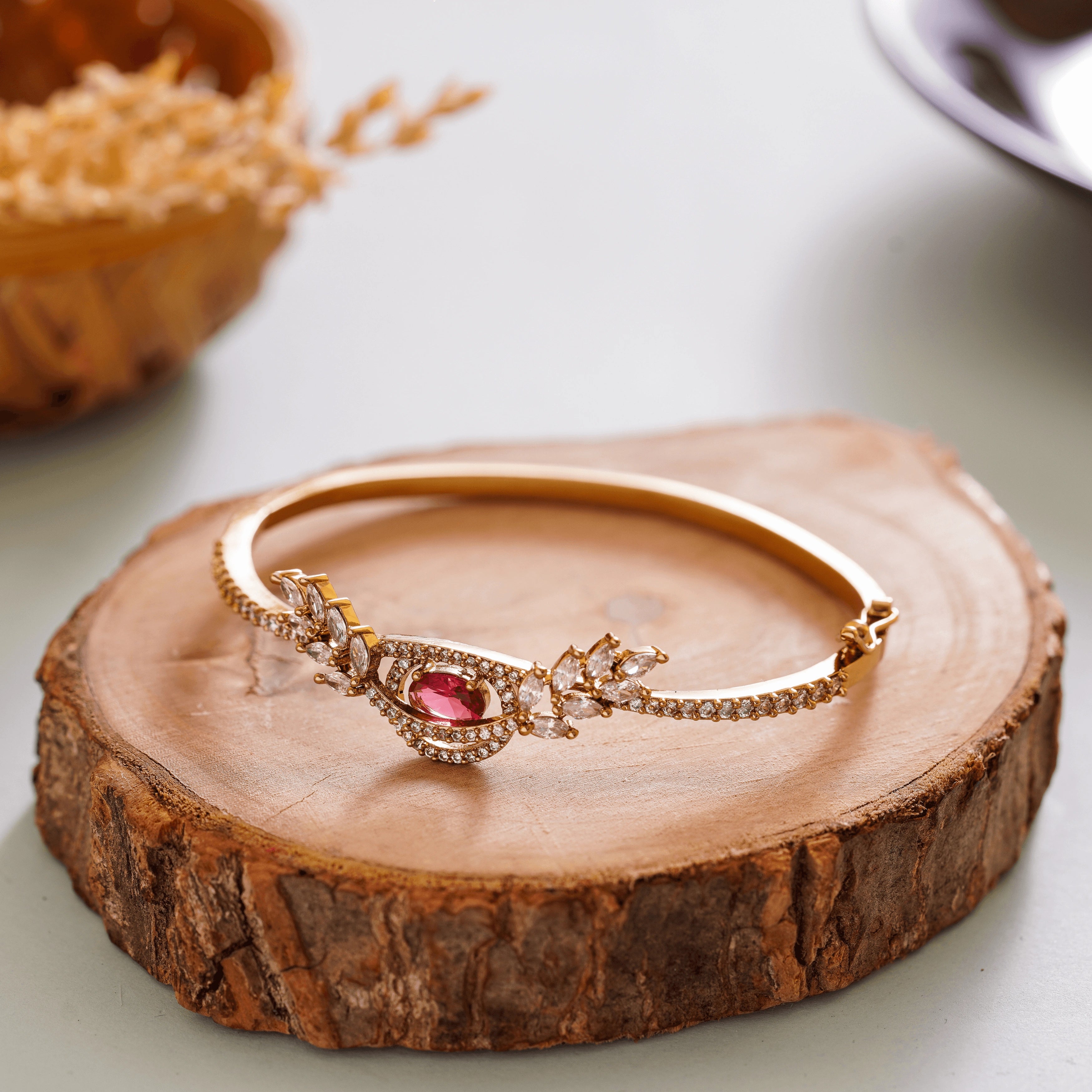 Uniquely designed gold plated red diamond Bracelet - Rukhmani
