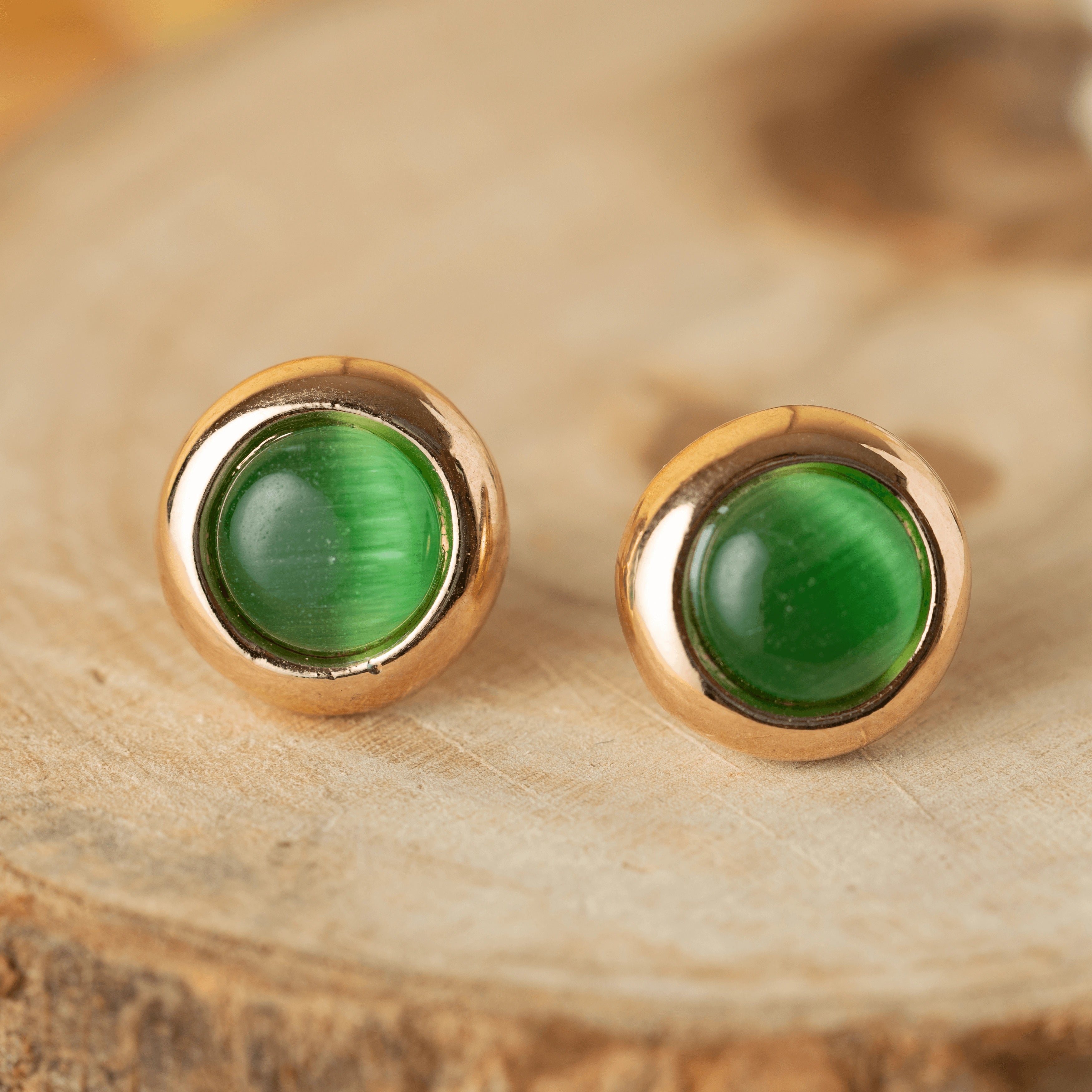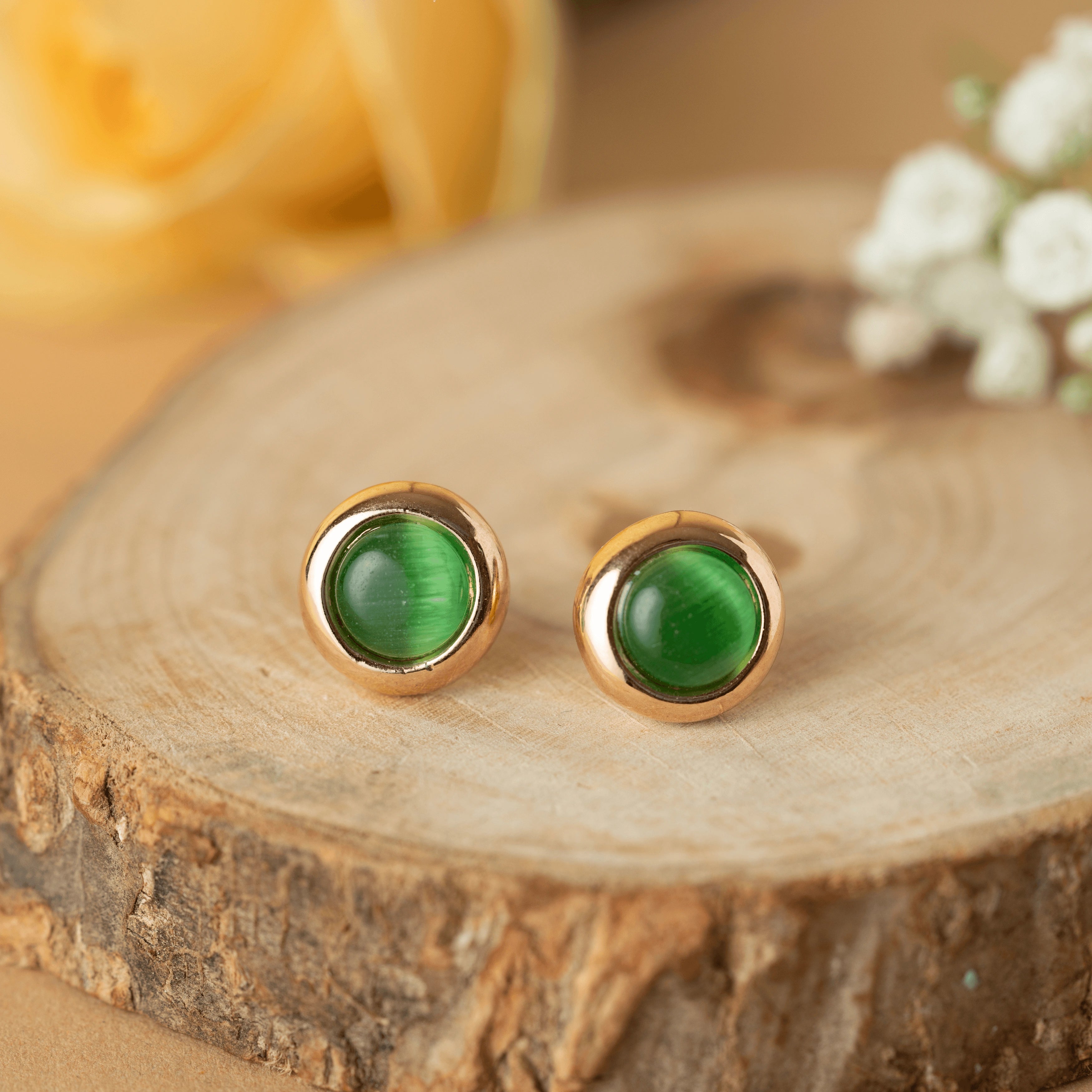 Round green stone stud earring