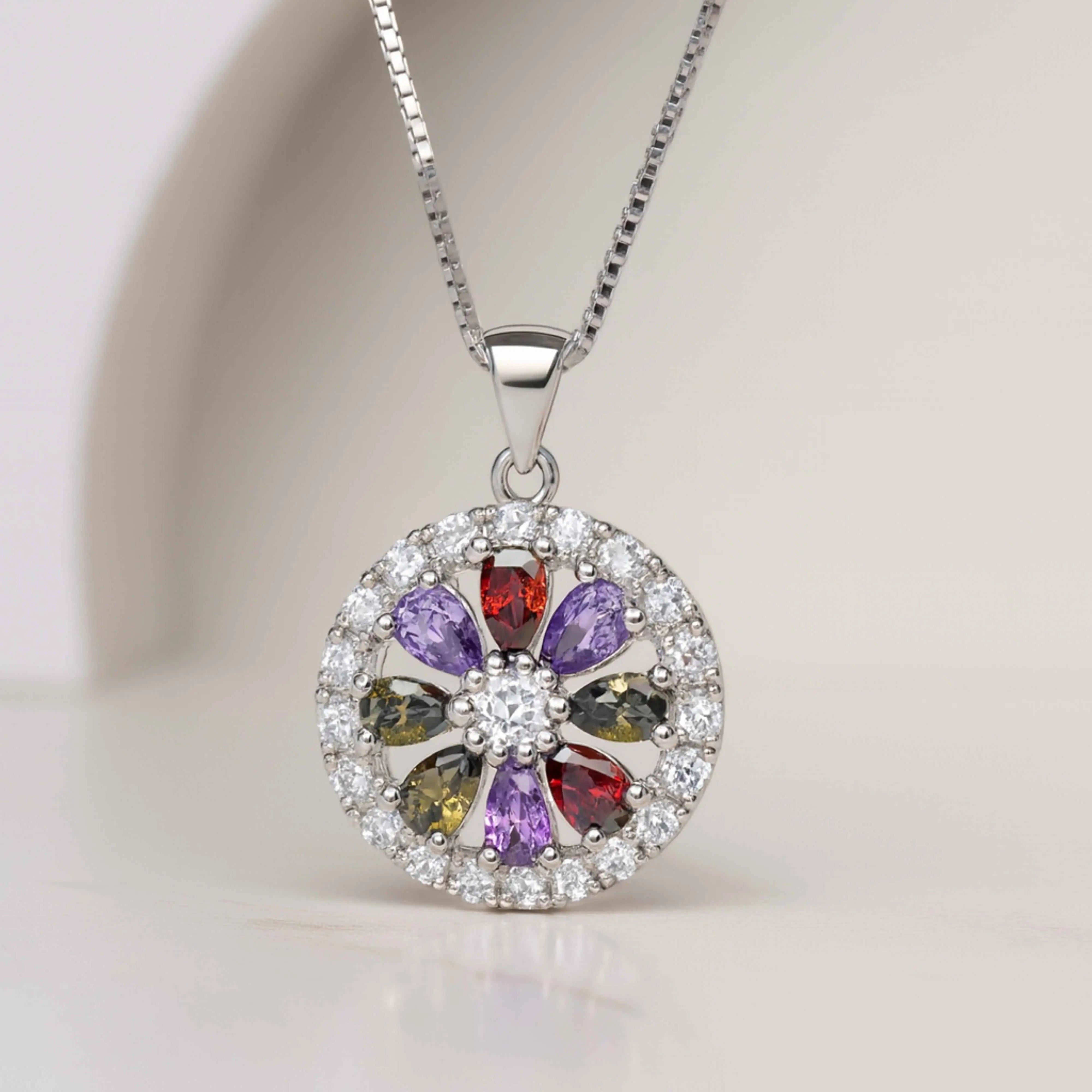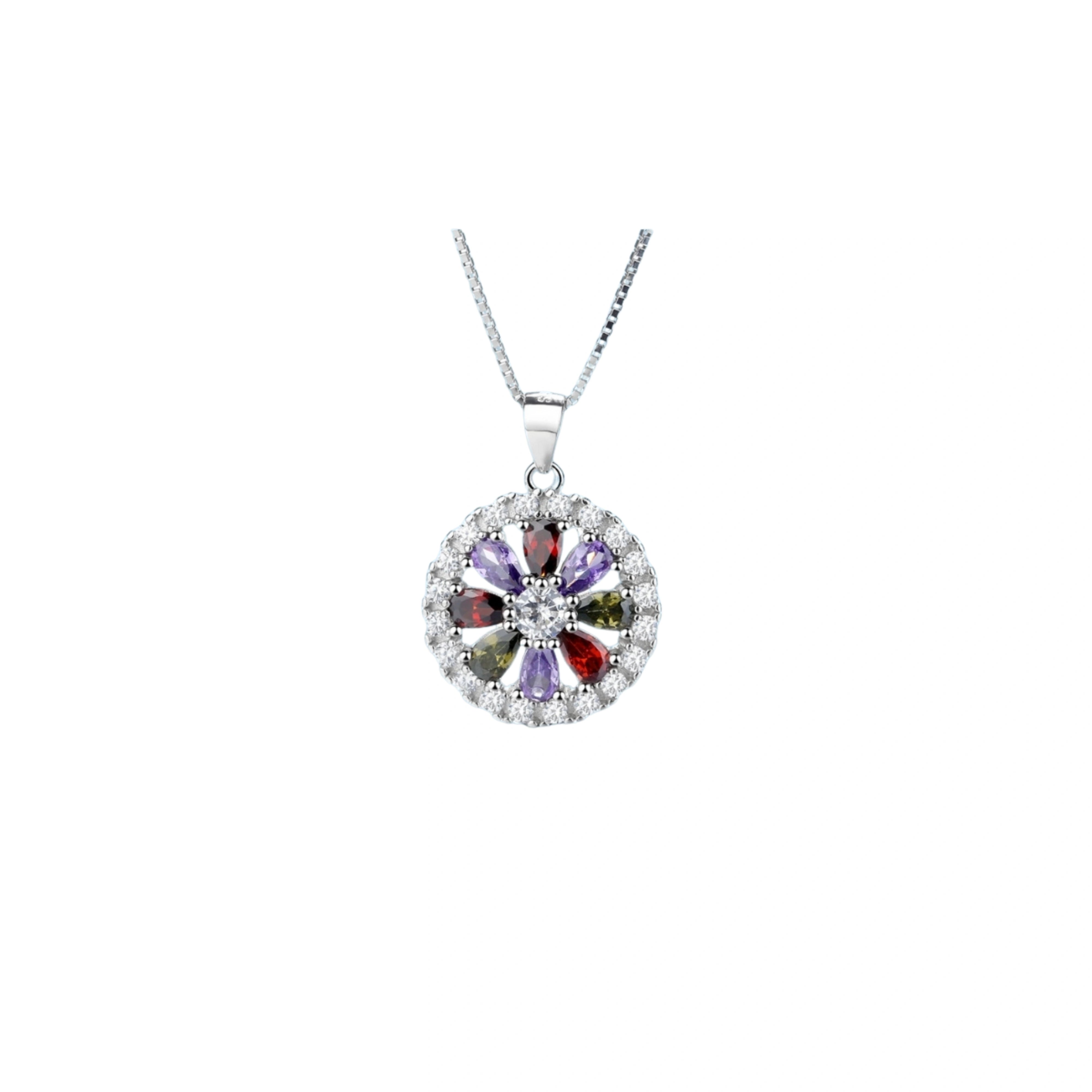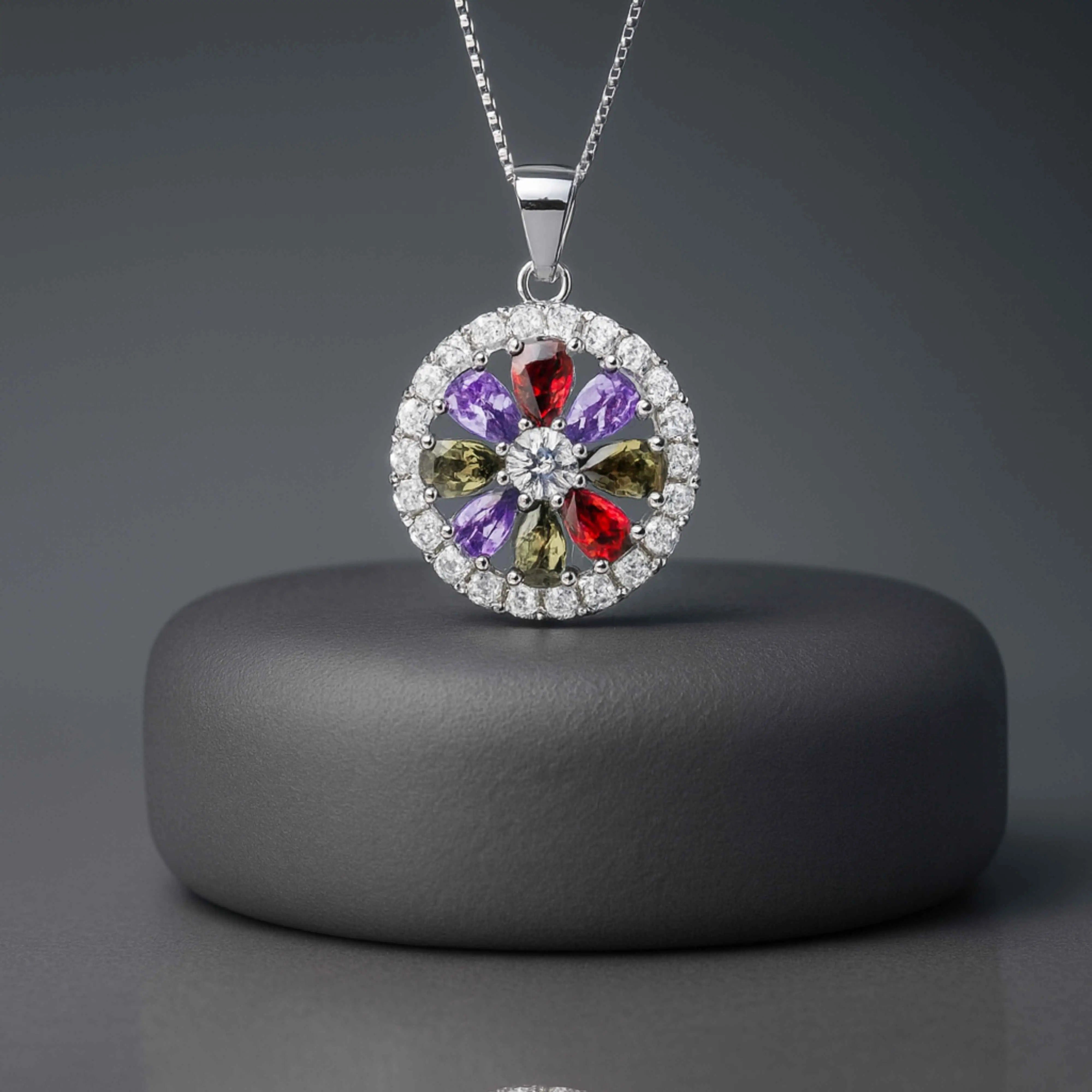 Round Multicolor Stone Pendant in 925 Sterling Silver