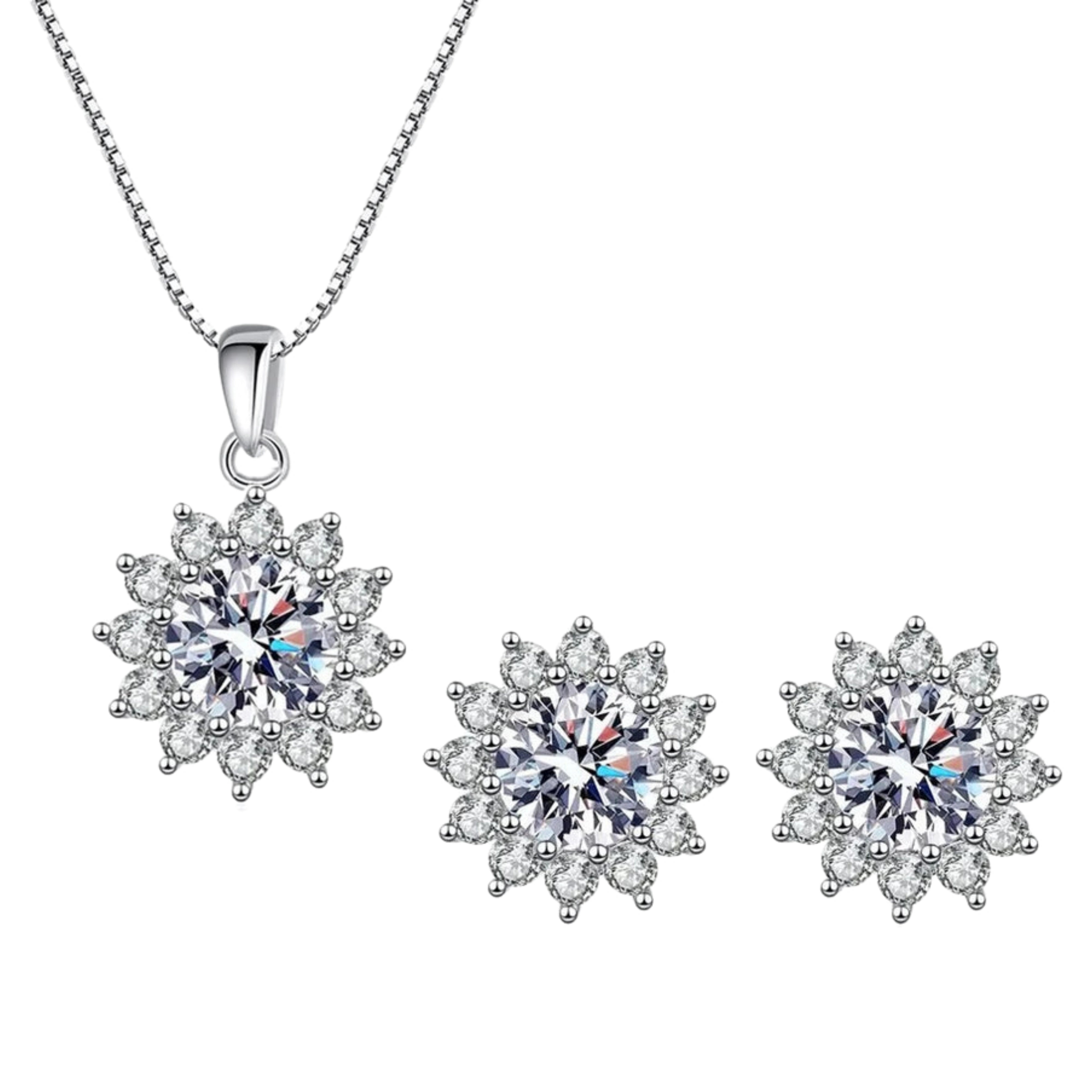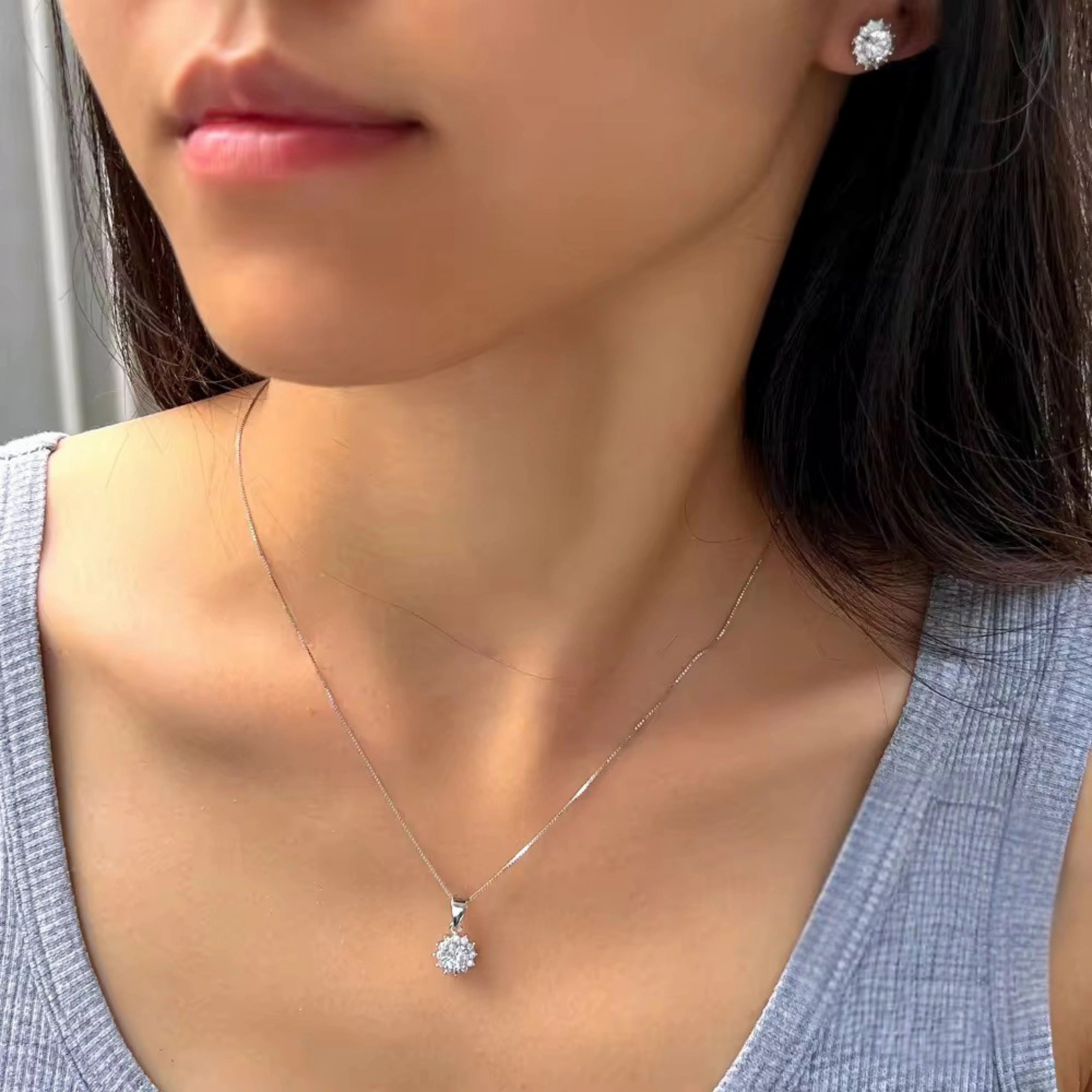 Bright S925 Sterling Silver Round Cubic Zirconia Necklace & Earrings Set