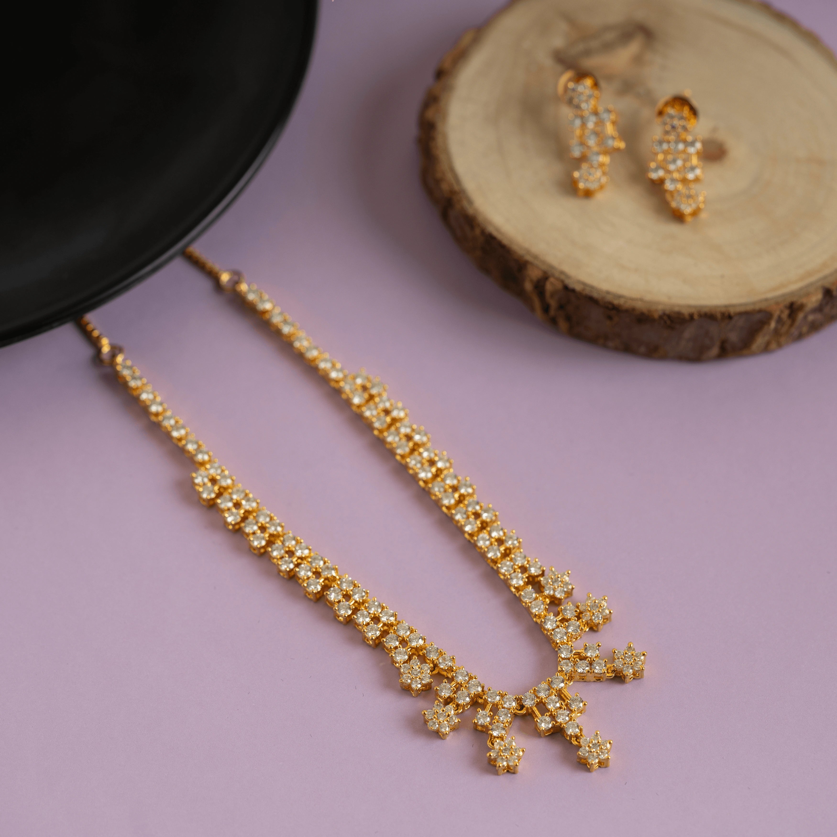 Set of gold plated unique diamond necklace and earring - Rukhmani
