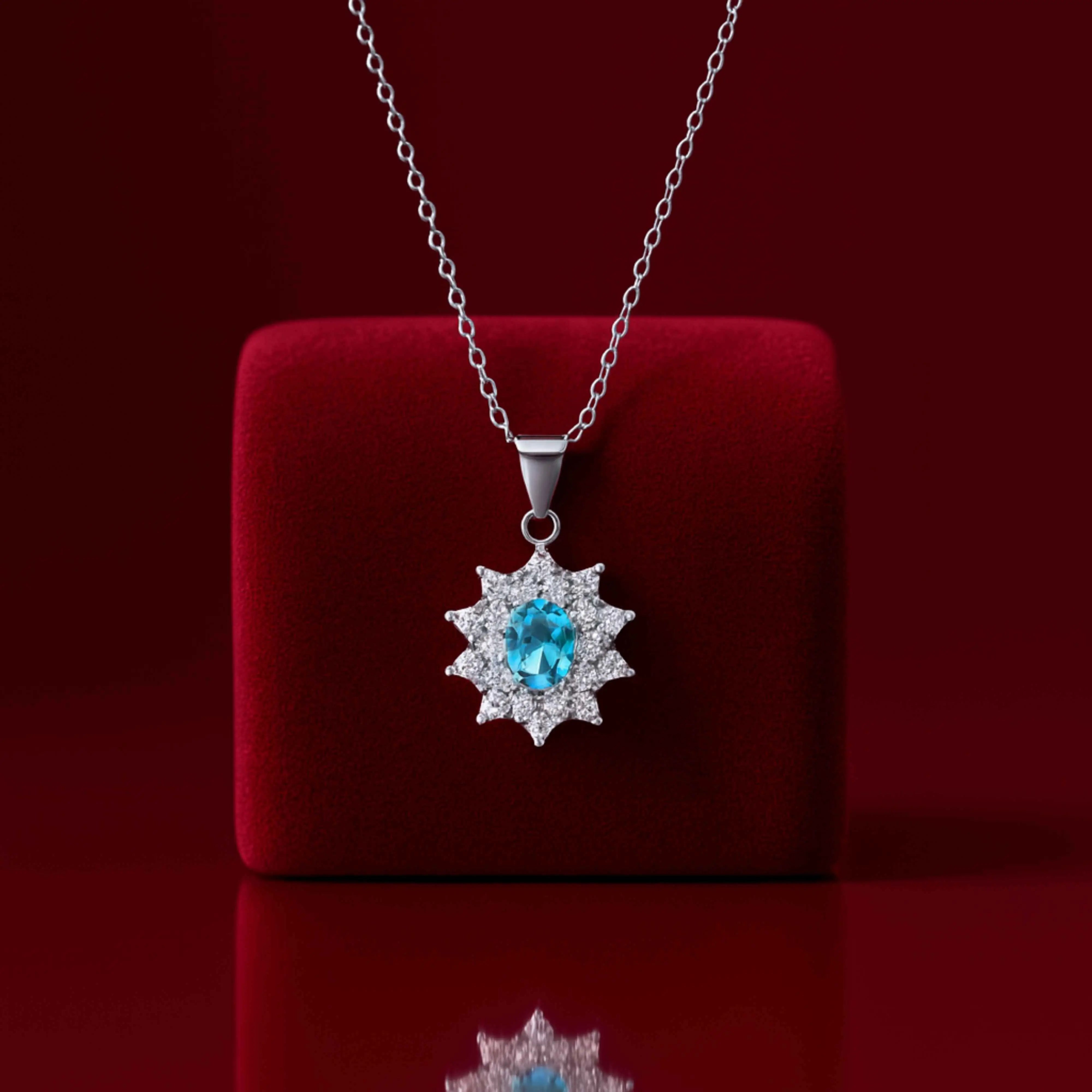 Starburst Blue Stone Pendant in 925 Sterling Silver