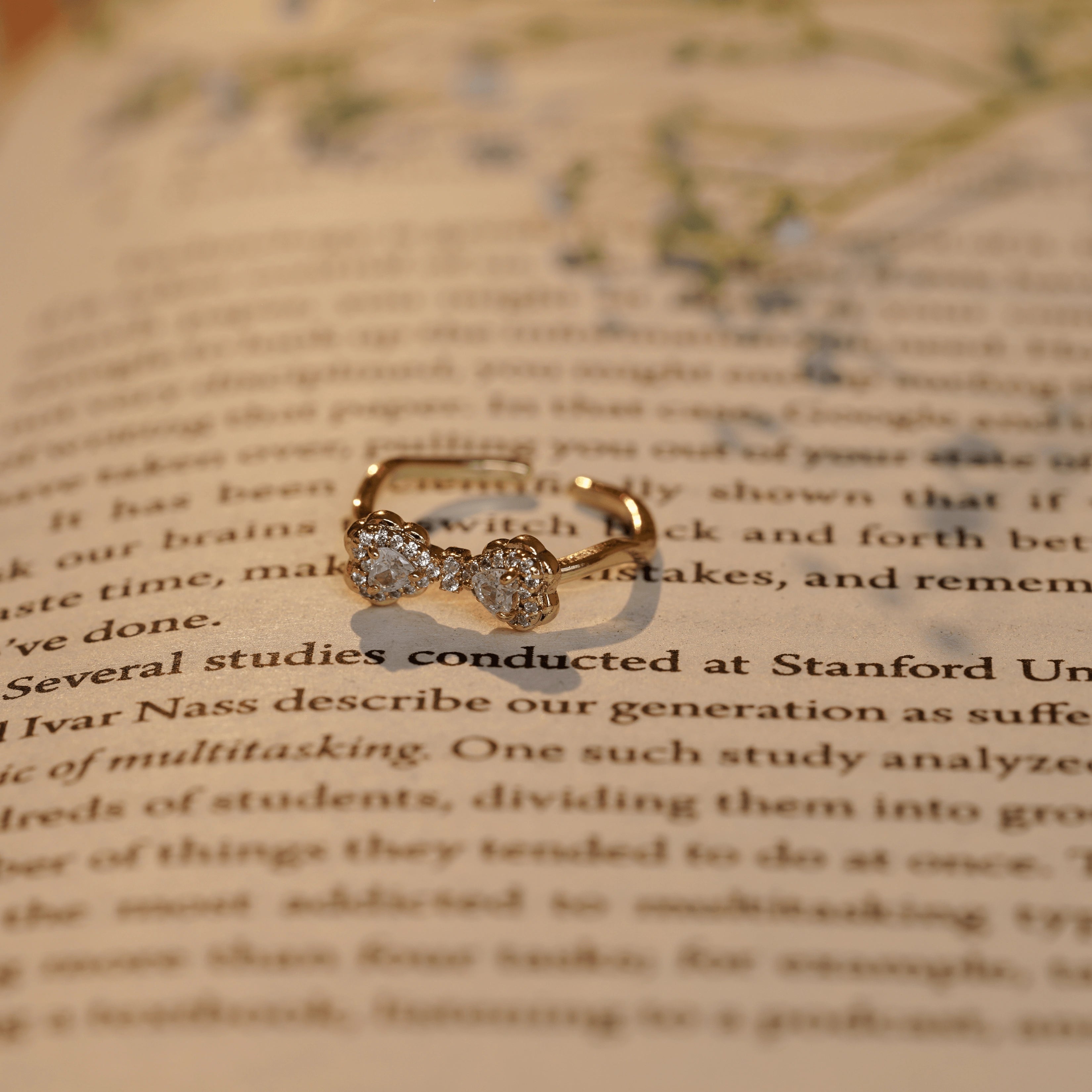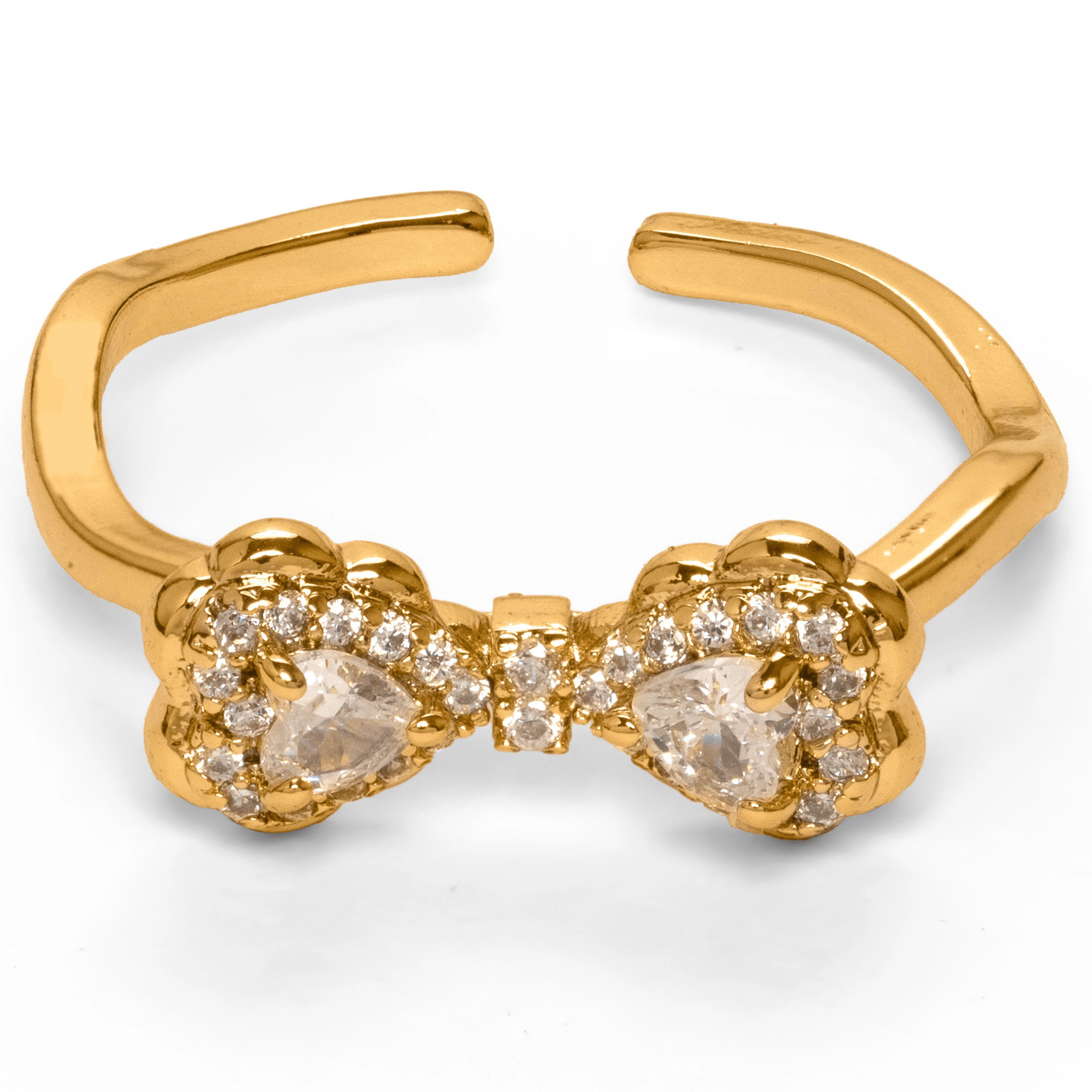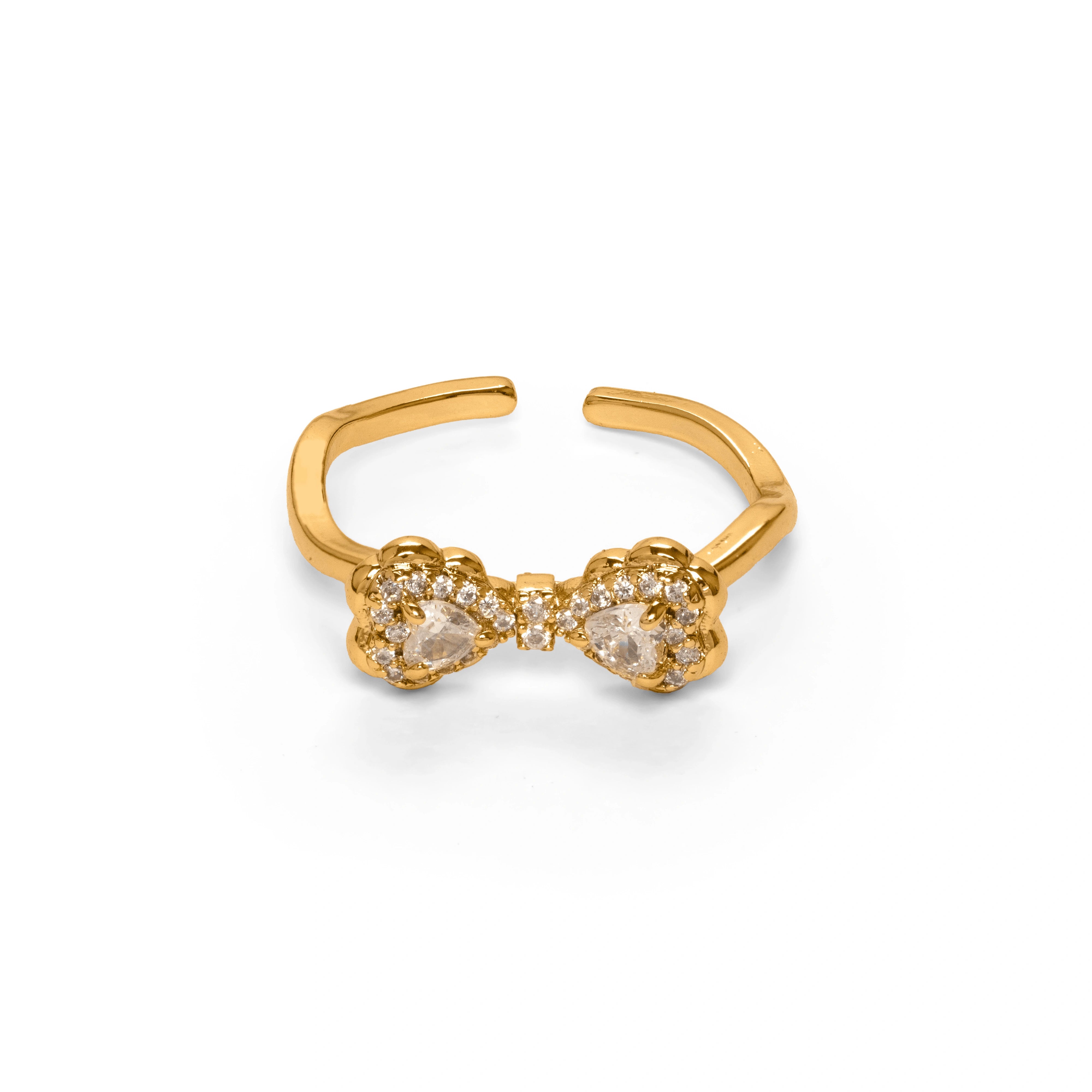 Unique Bow Shape Aron Diamond Adjustable Gold Plated Rings