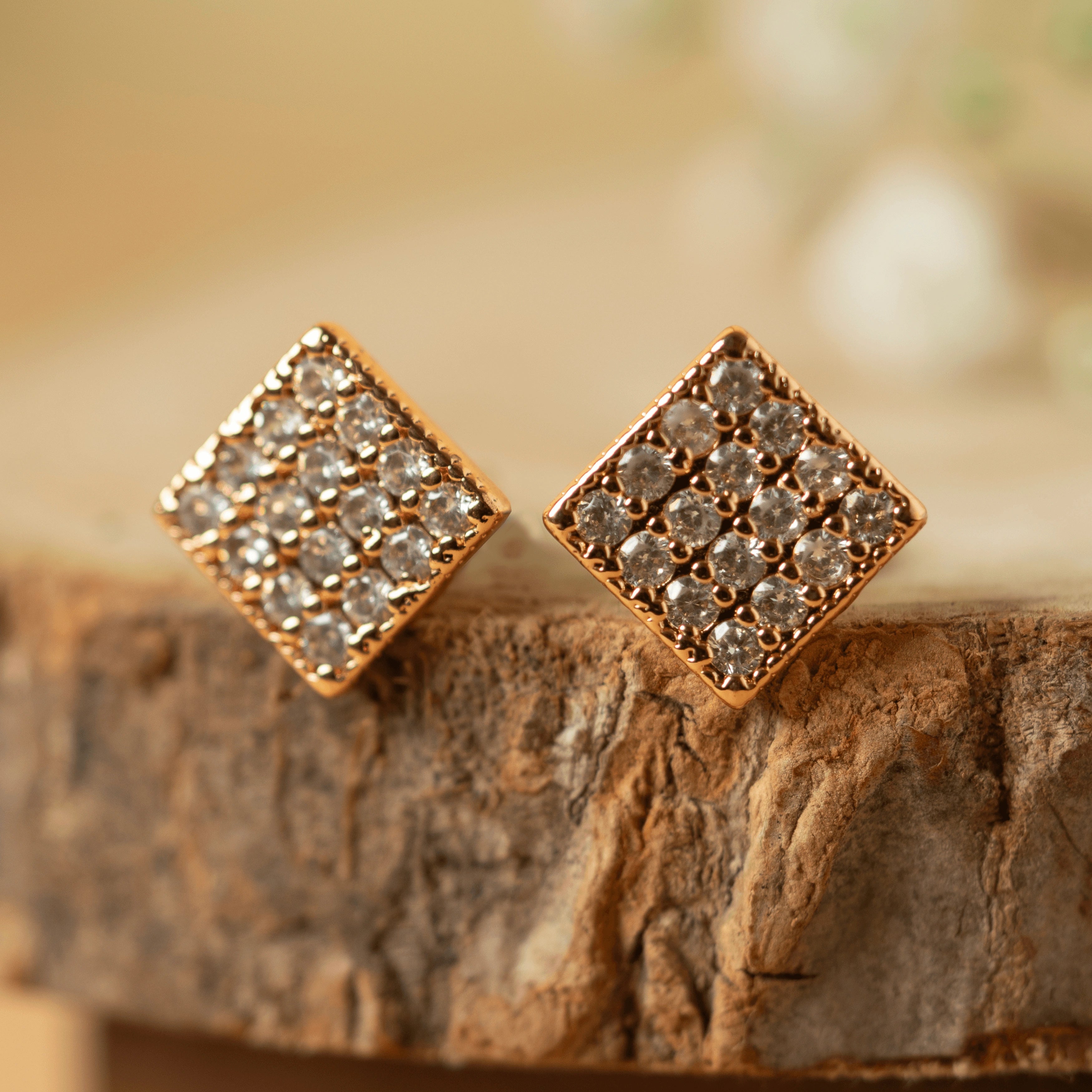 Unique Design Gold Plated Kesu Diamond Stud Earrings