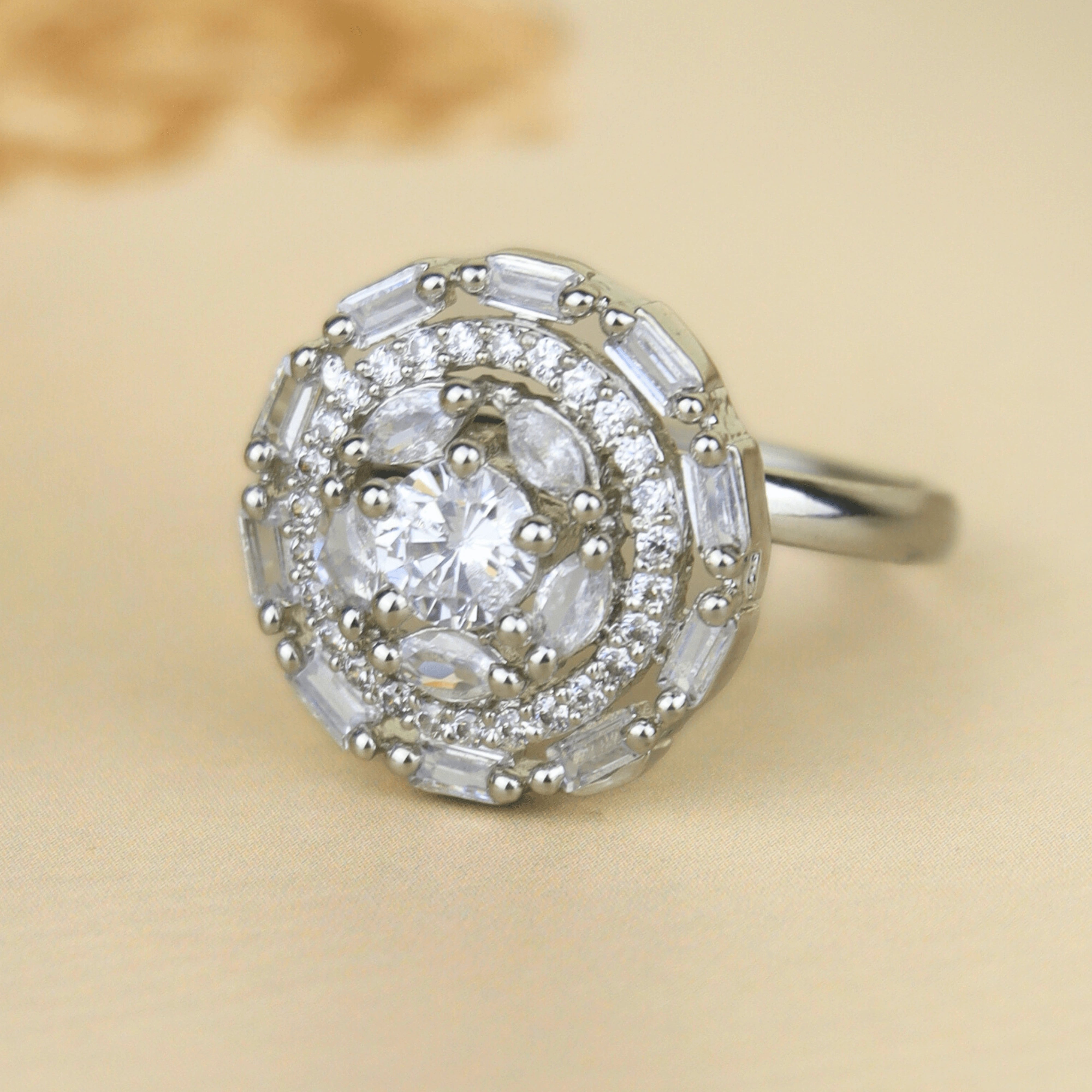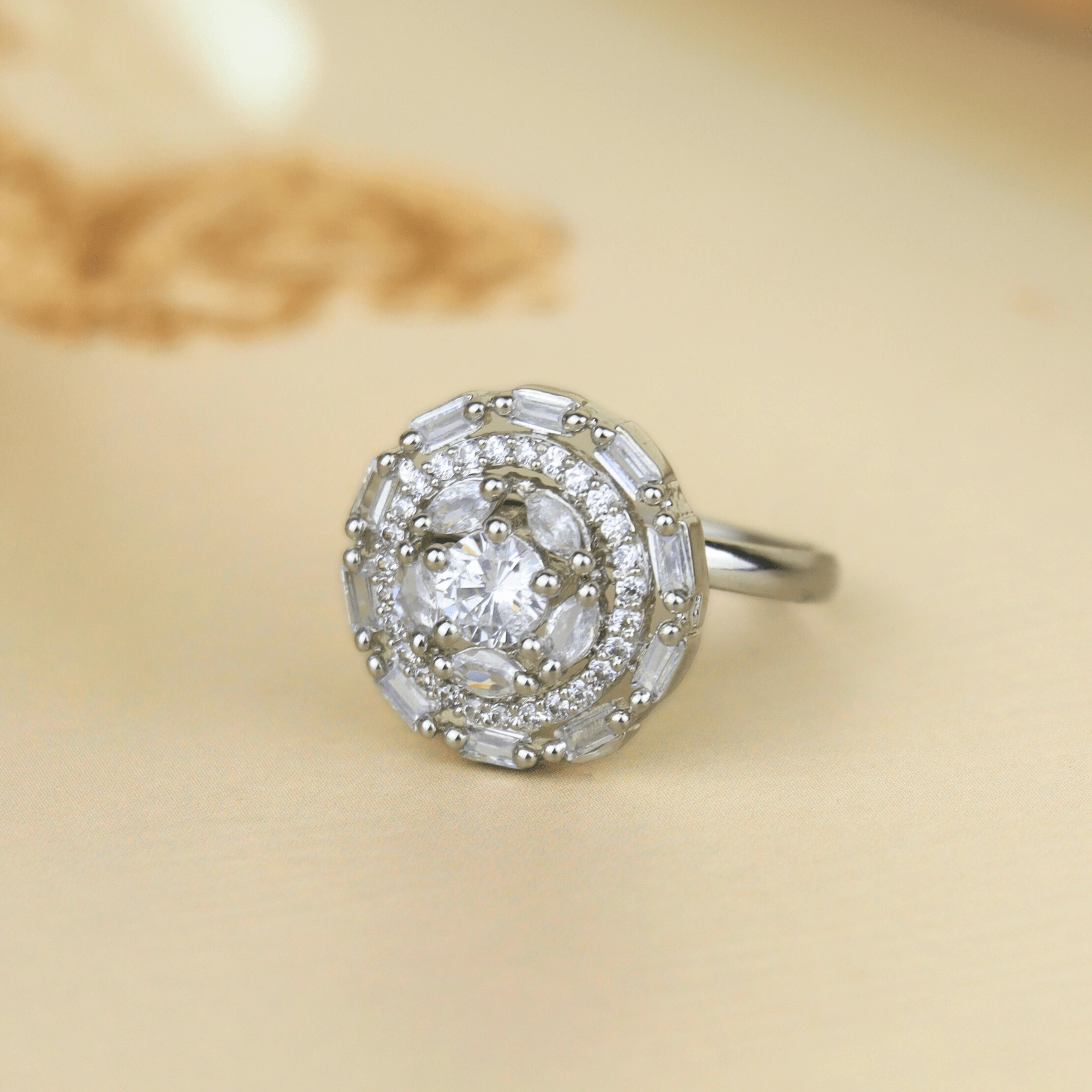Valentine's Special Latest Design Silver Plated Diamond Fancy Ring - Rukhmani
