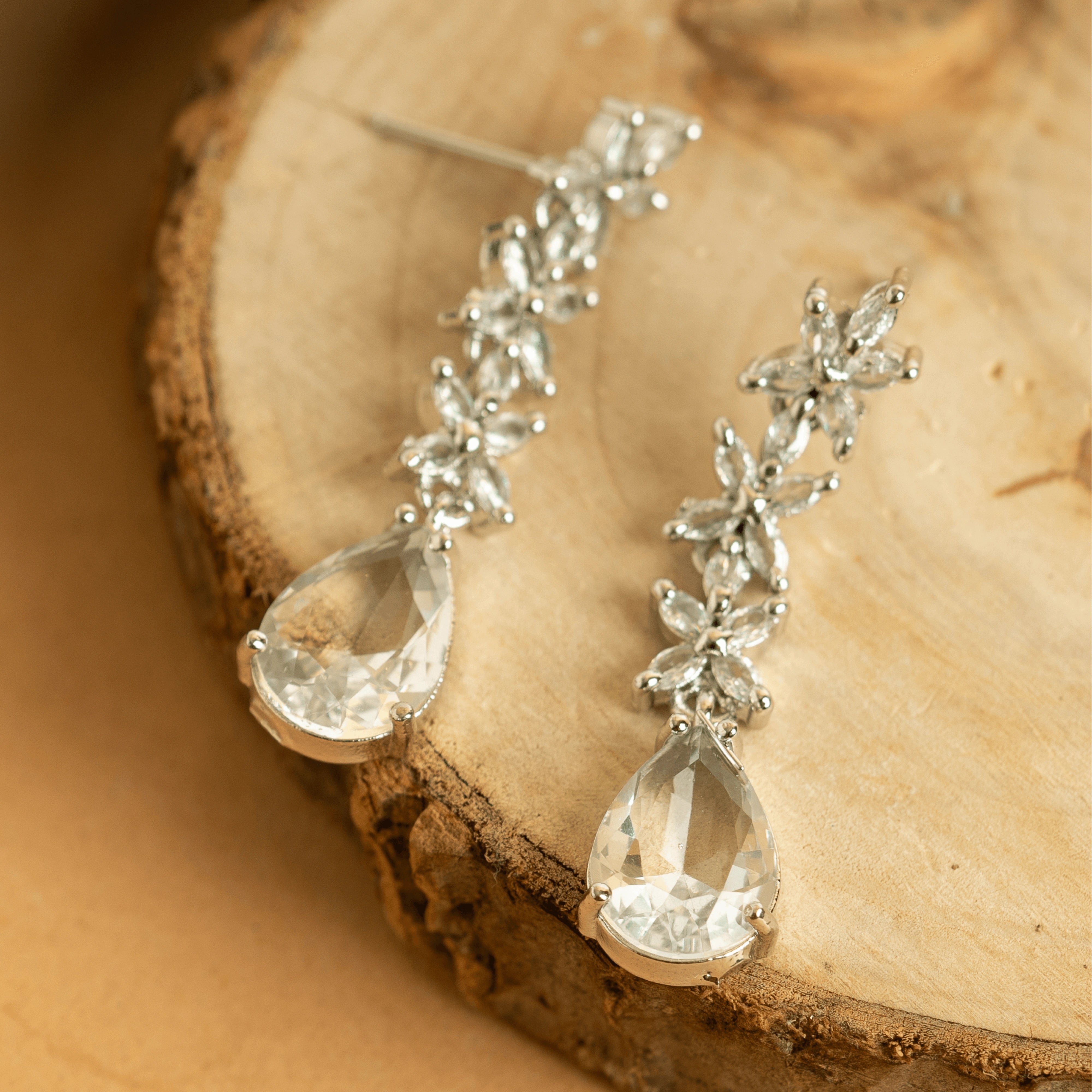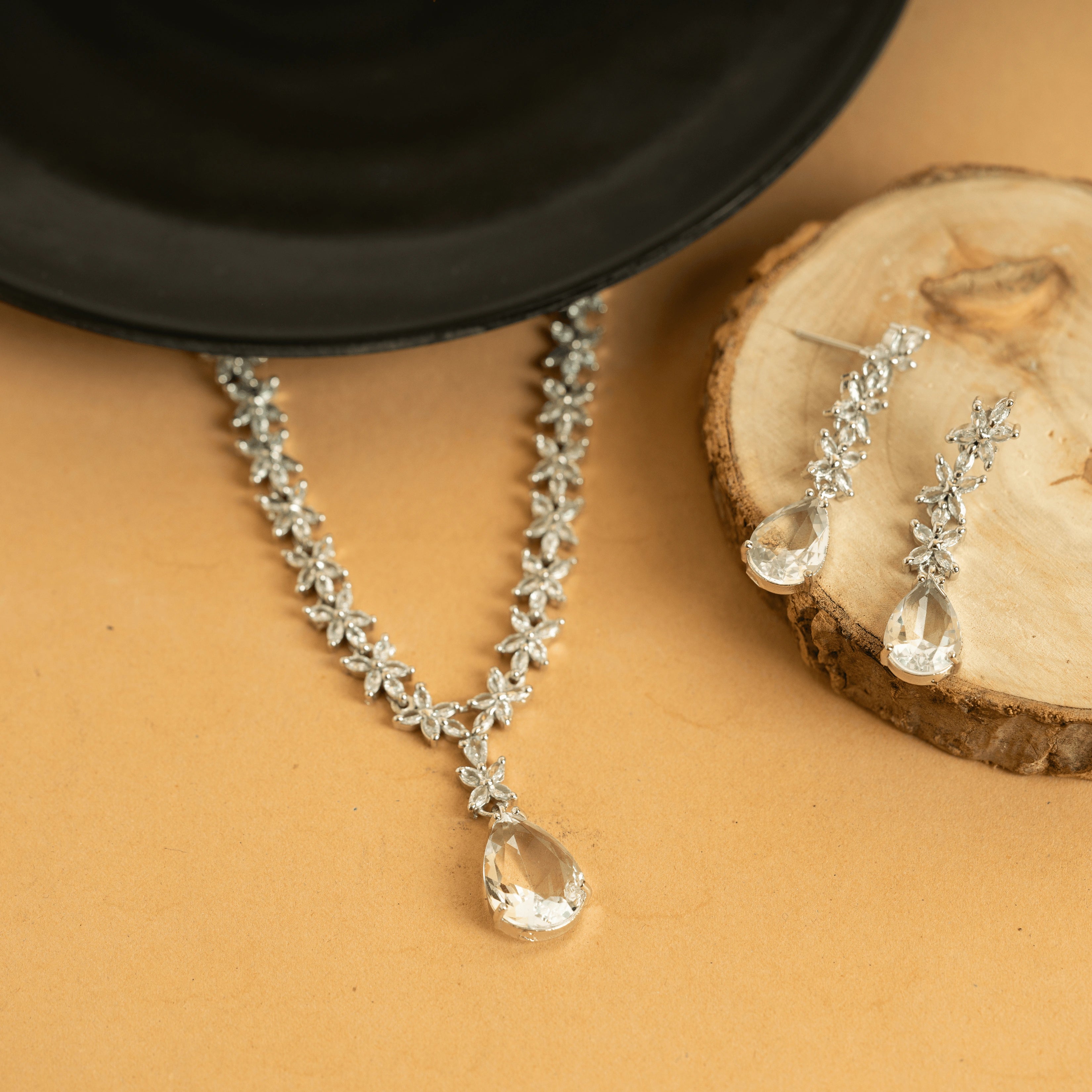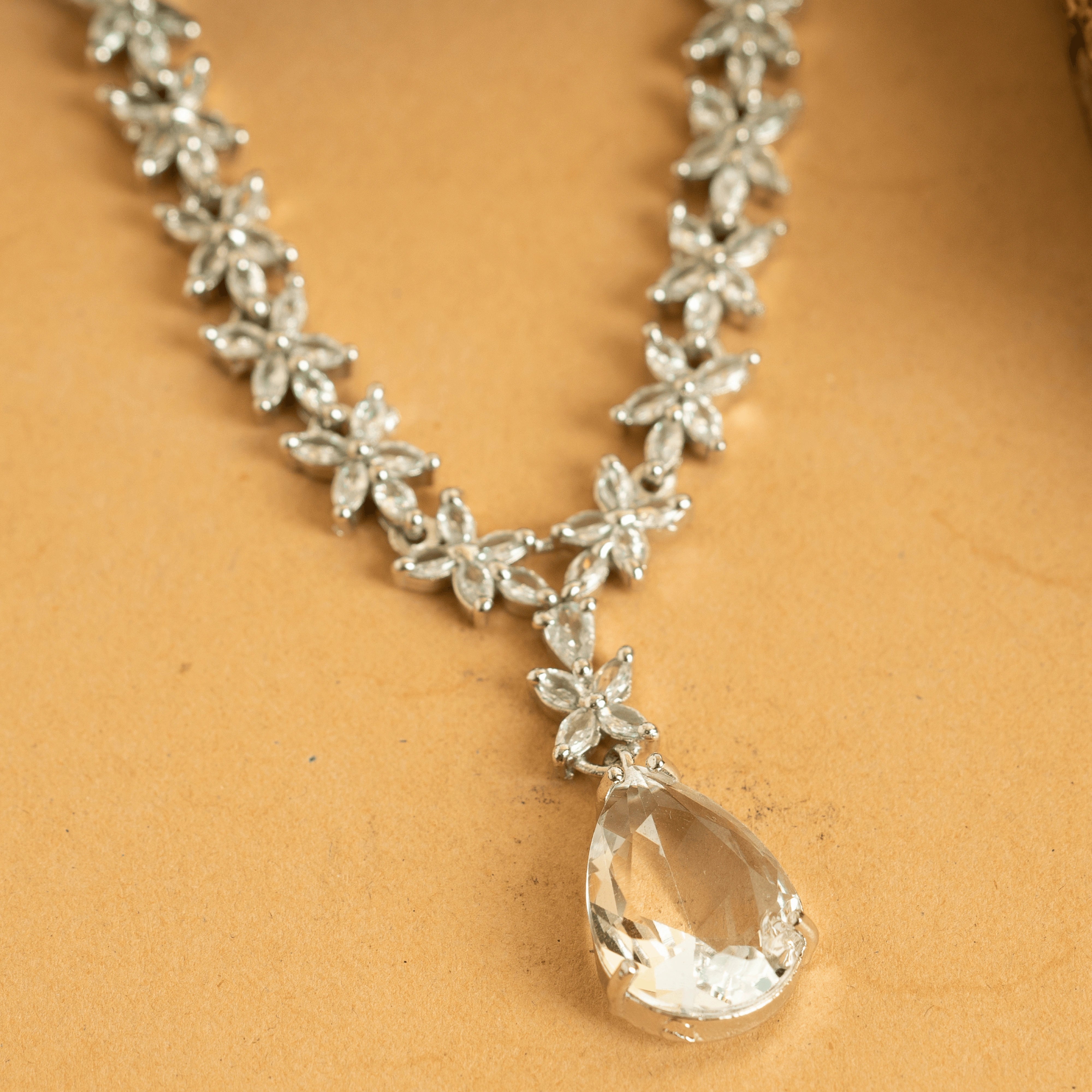 White Drop American Diamond Necklace Set With Earrings - Rukhmani
